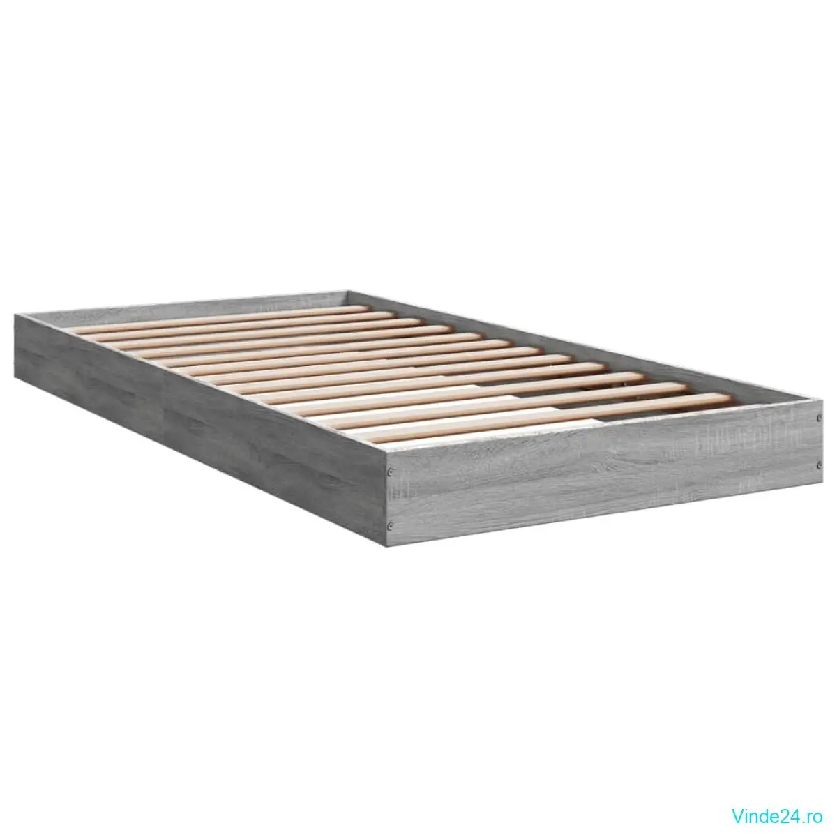 vidaXL Cadru de pat, gri sonoma, 90x190 cm, lemn prelucrat