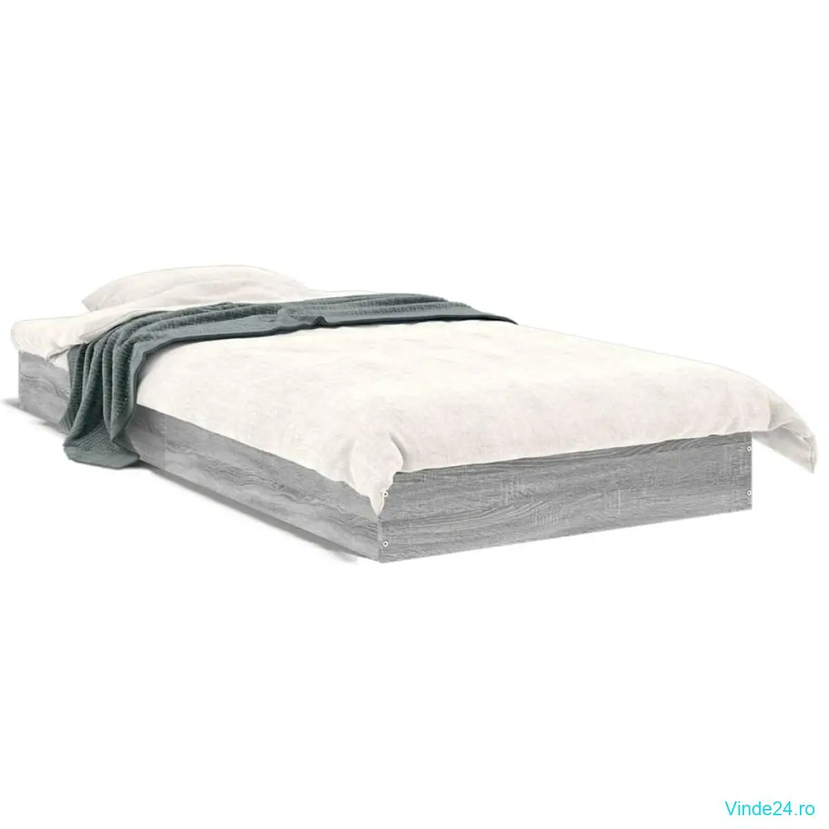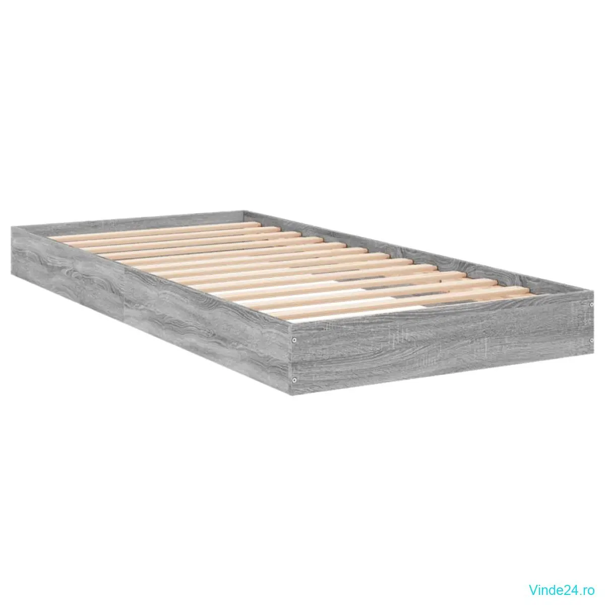 vidaXL Cadru de pat, gri sonoma, 90x200 cm, lemn prelucrat