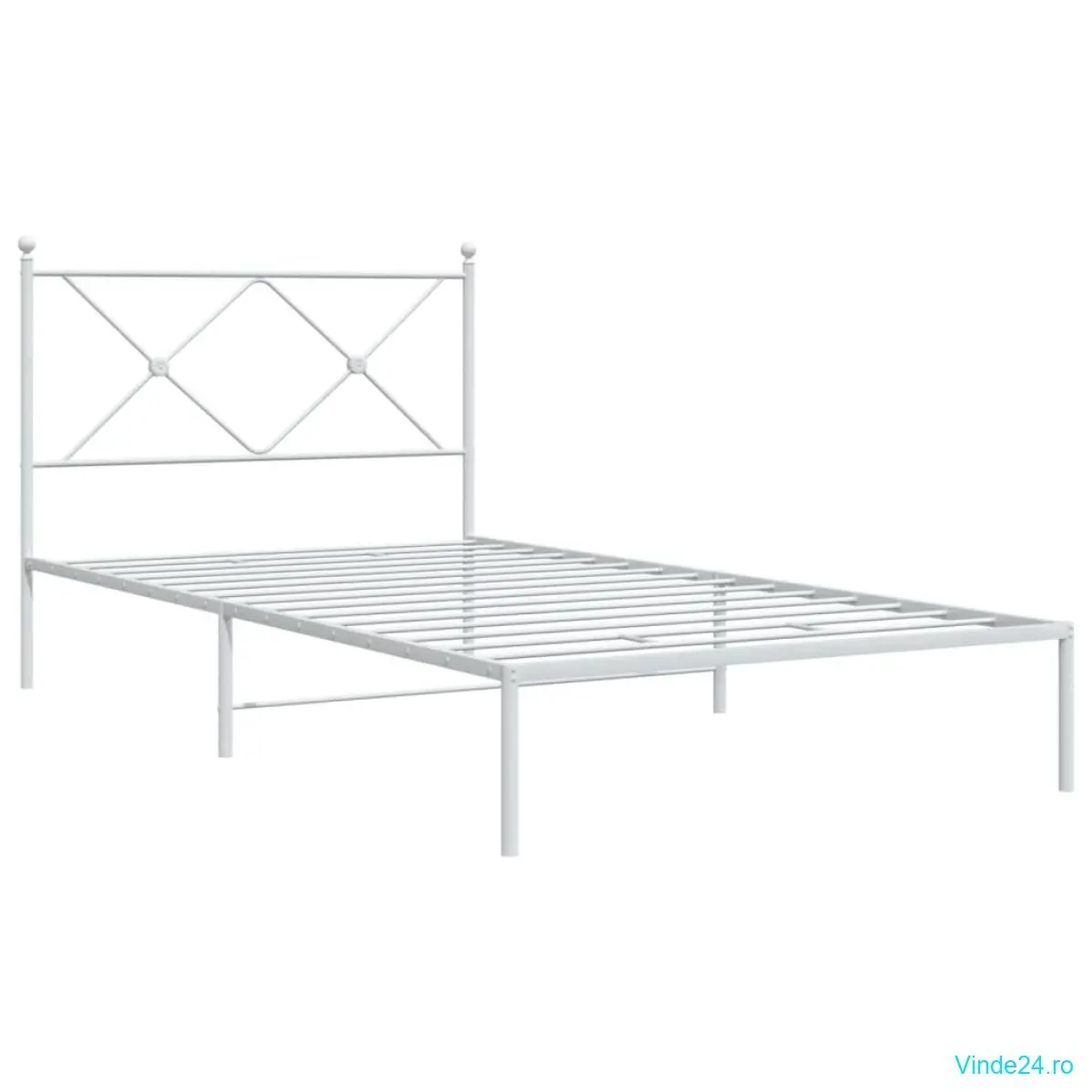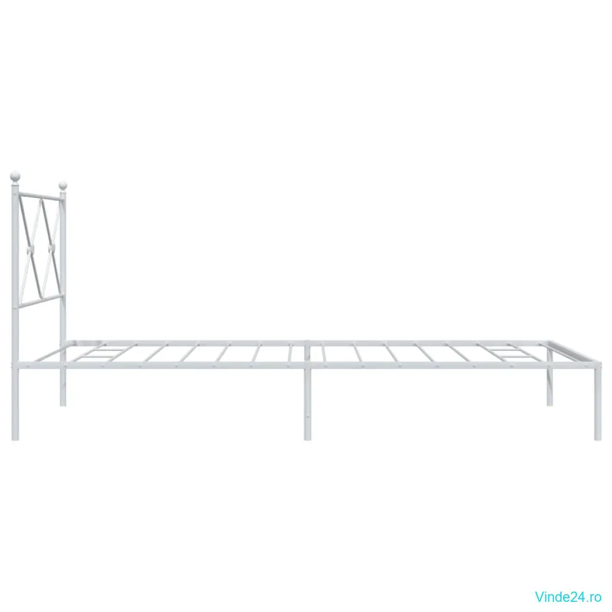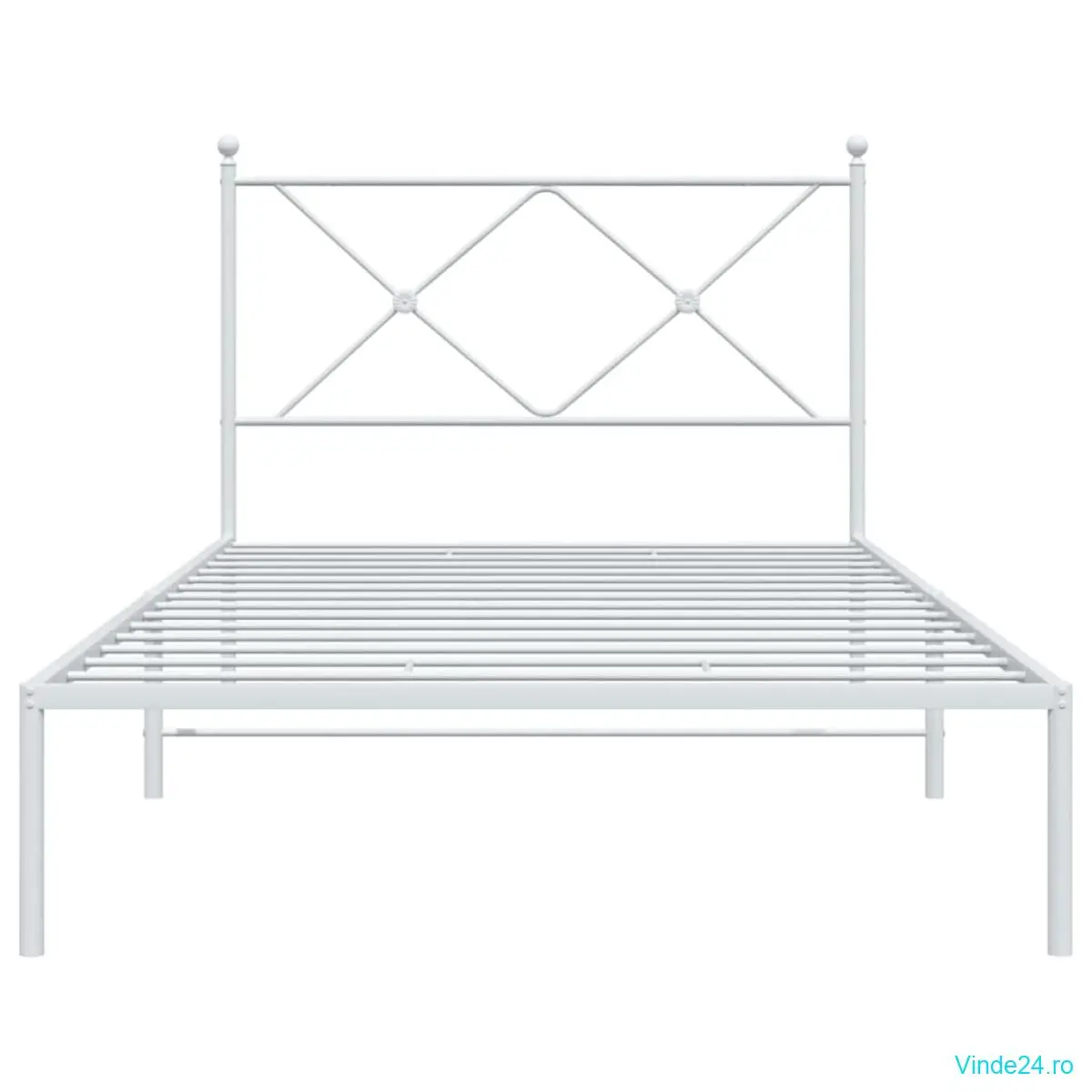 vidaXL Cadru de pat metalic cu tăblie, alb, 100x190 cm