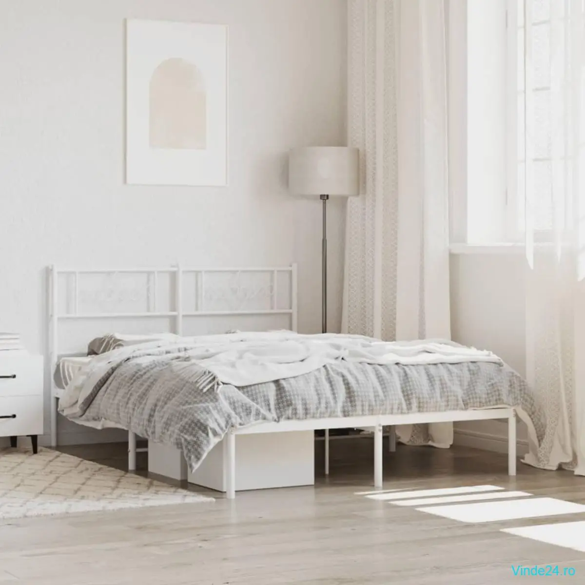 - Lamele și picioarele metalice: Cadrul de pat metalic este completat cu șipci metalice și picioare centrale, pentru a oferi saltelei dvs. suportul și respirabilitatea atât de necesare.
