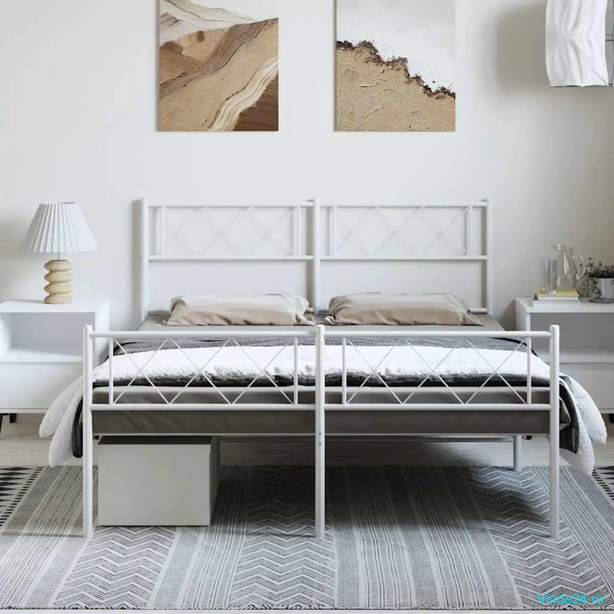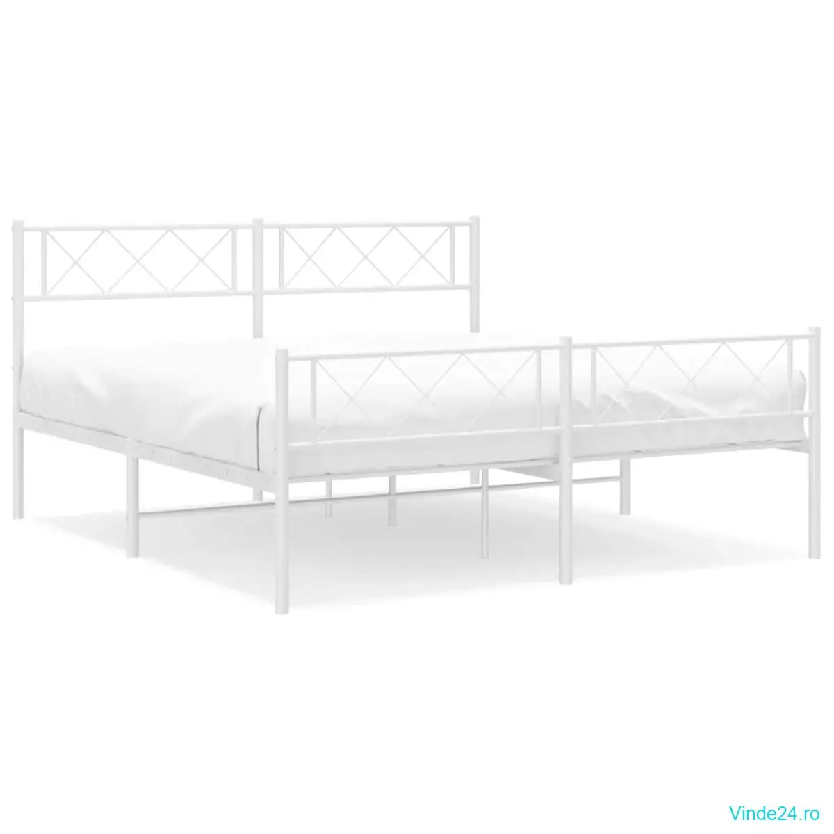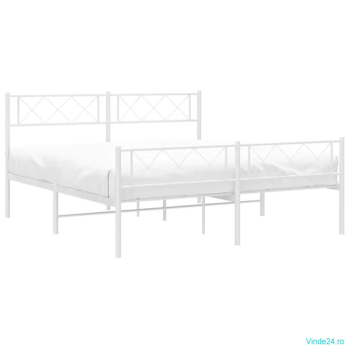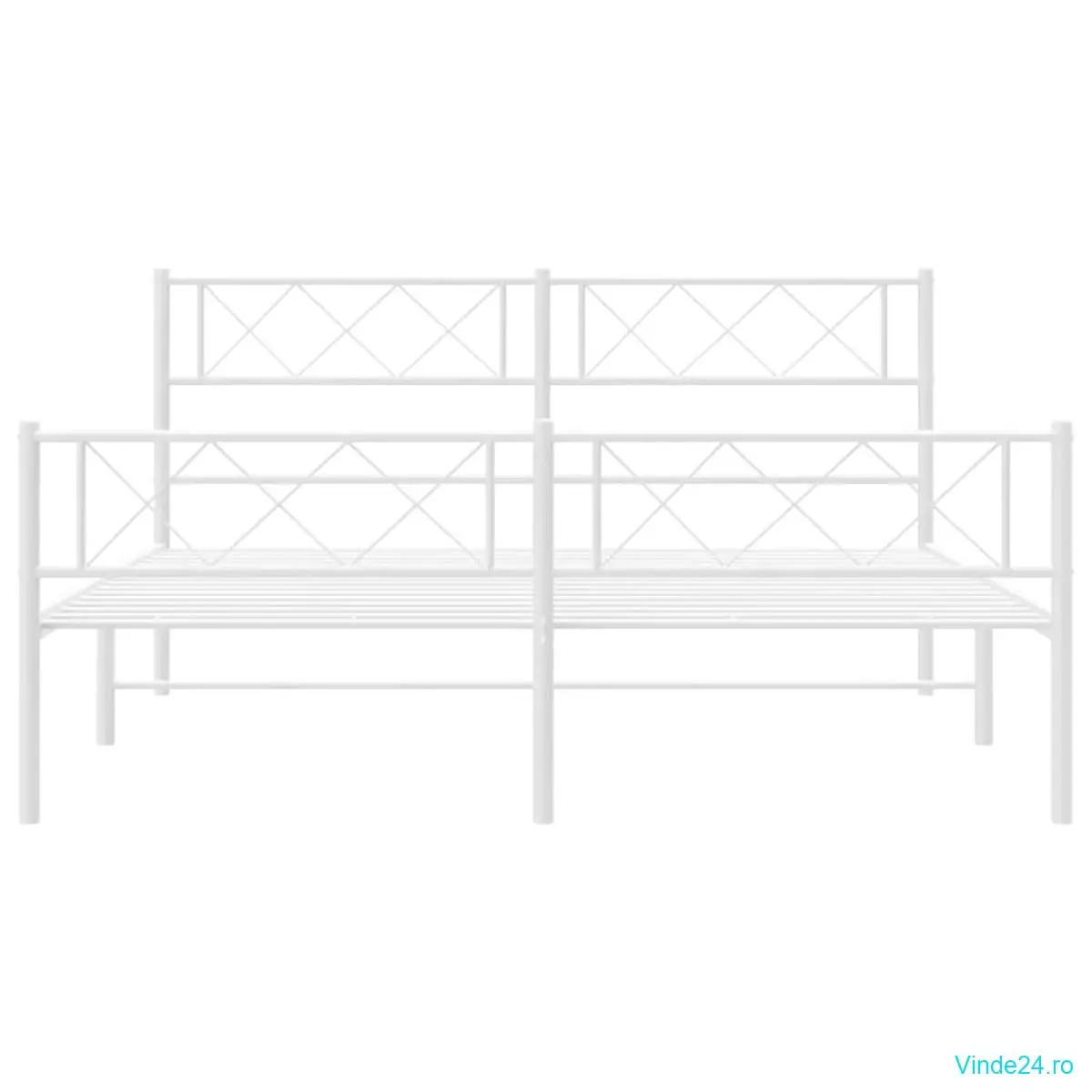 vidaXL Cadru de pat metalic cu tăblie, alb, 135x190 cm