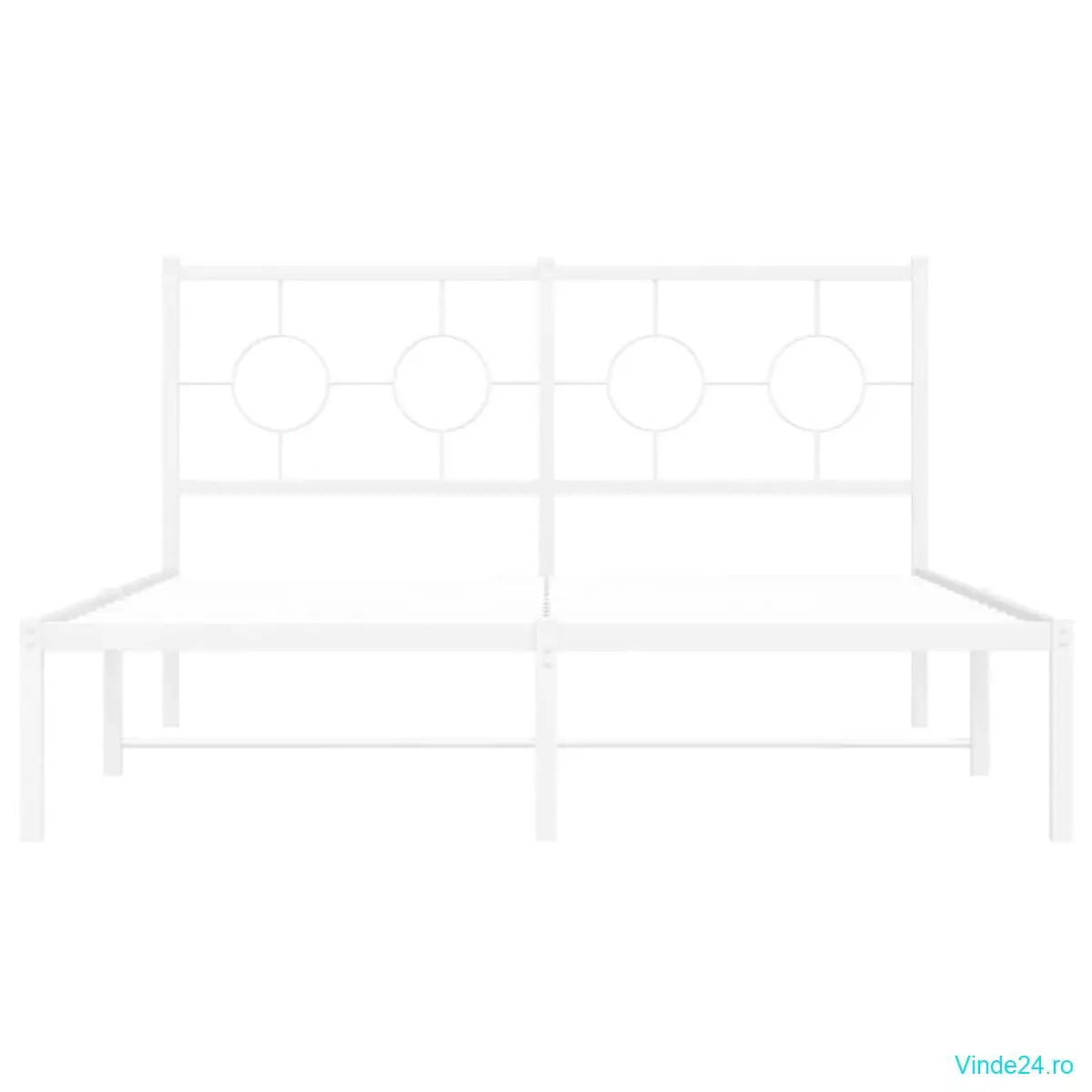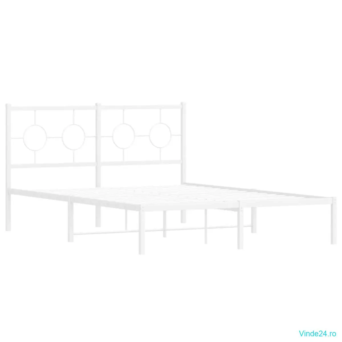 vidaXL Cadru de pat metalic cu tăblie, alb, 135x190 cm