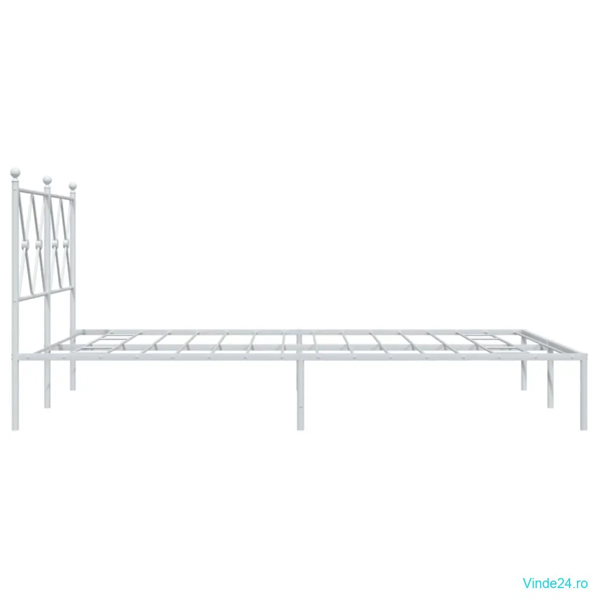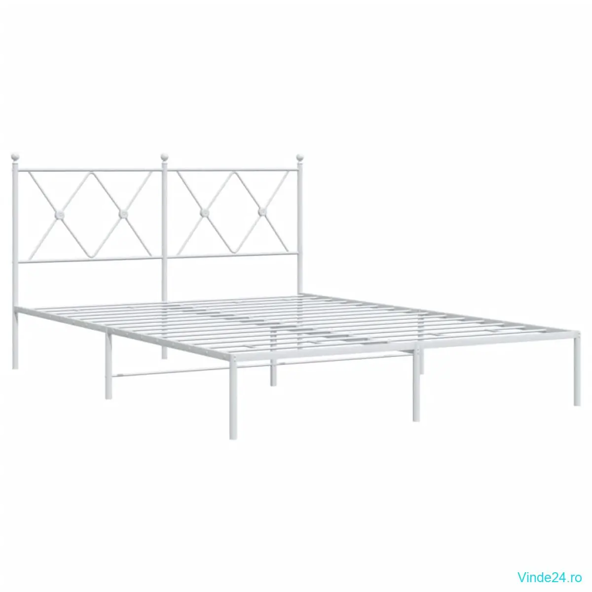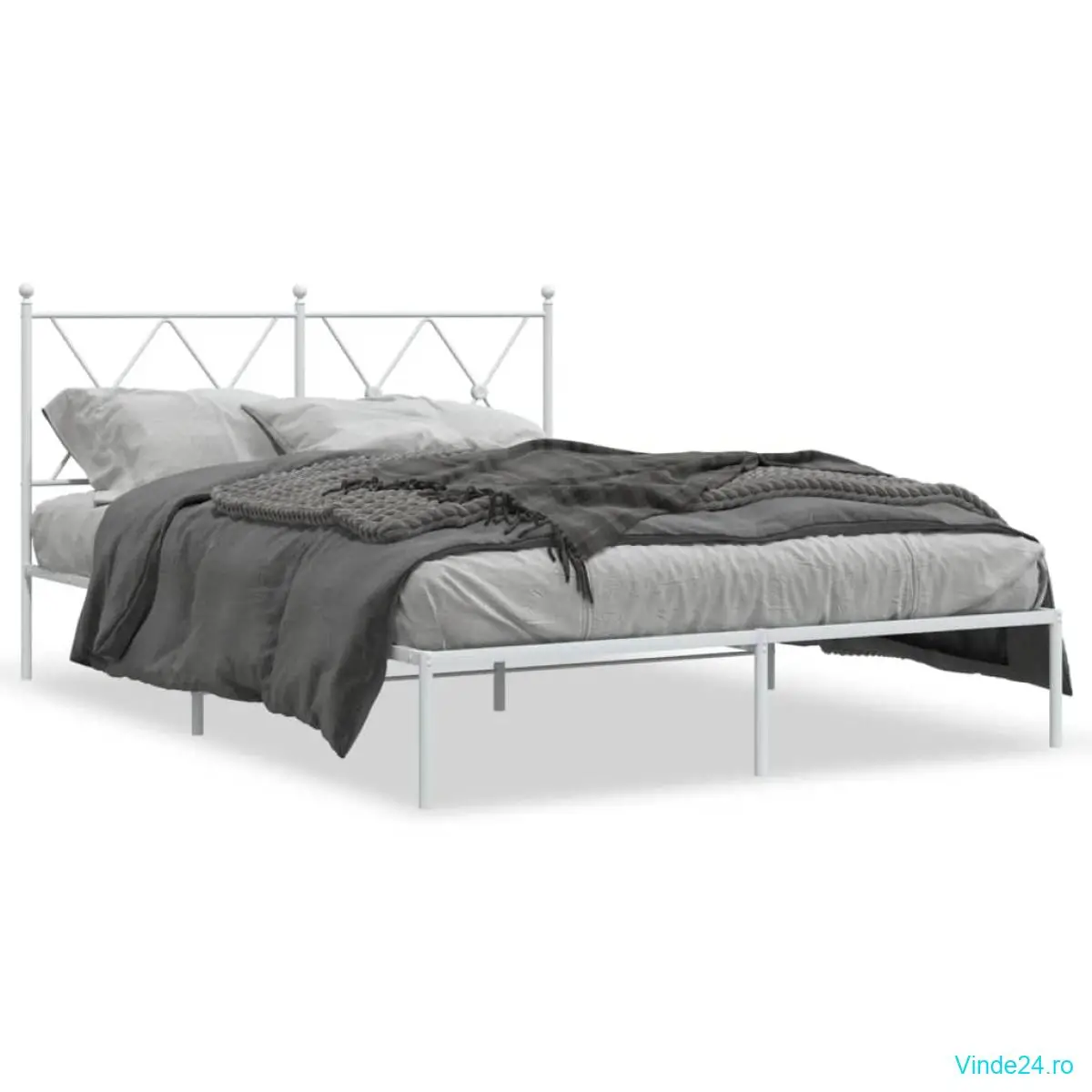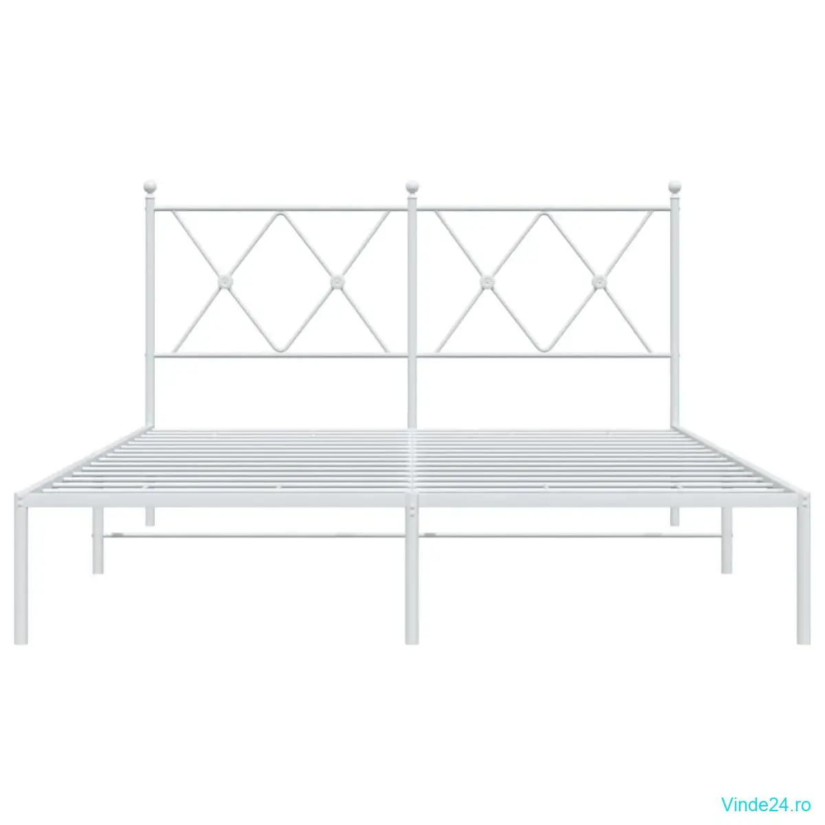 vidaXL Cadru de pat metalic cu tăblie, alb, 140x190 cm