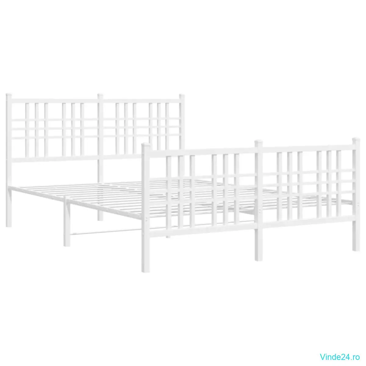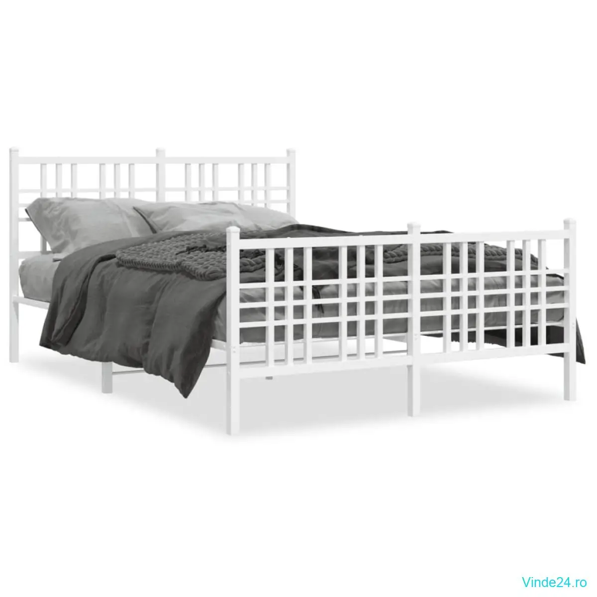 vidaXL Cadru de pat metalic cu tăblie, alb, 140x200 cm