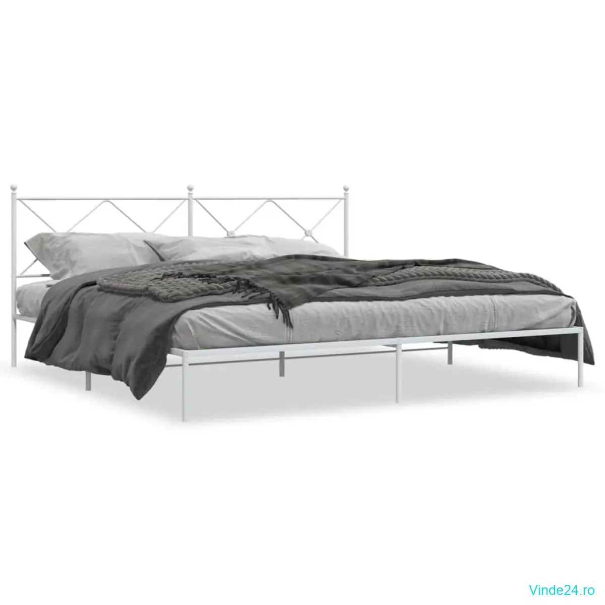 vidaXL Cadru de pat metalic cu tăblie, alb, 200x200 cm