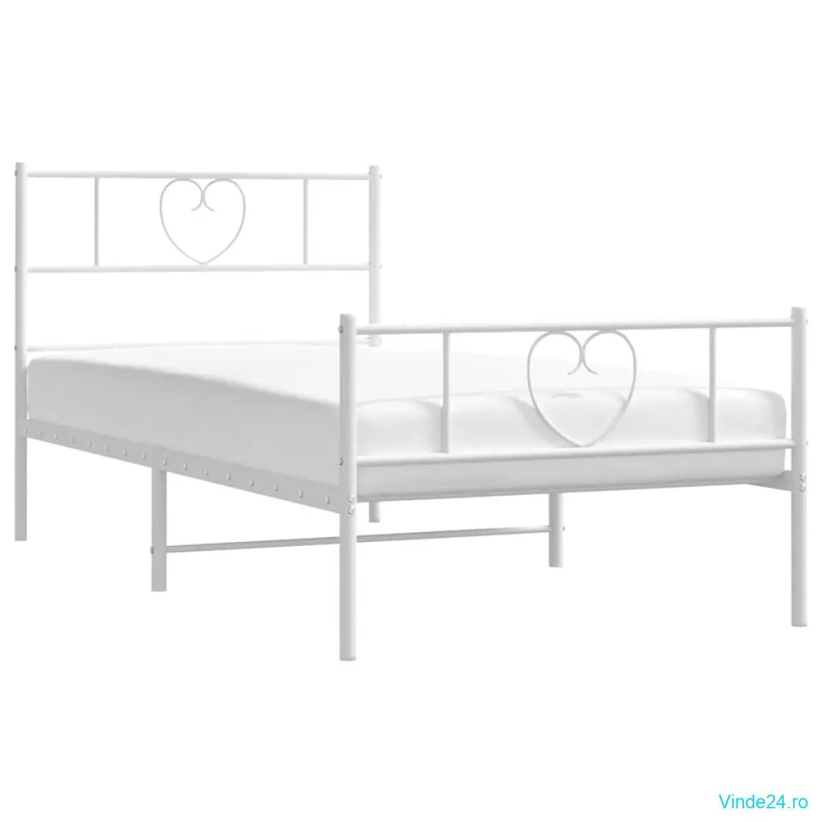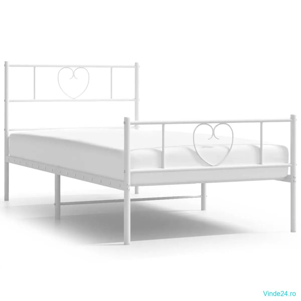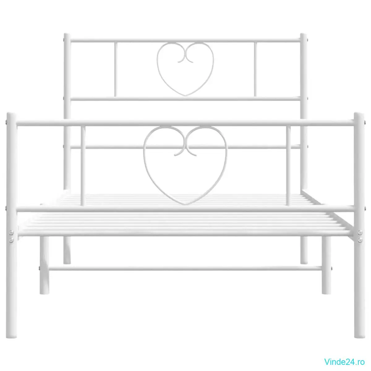 vidaXL Cadru de pat metalic cu tăblie de cap/picioare, alb, 100x200 cm