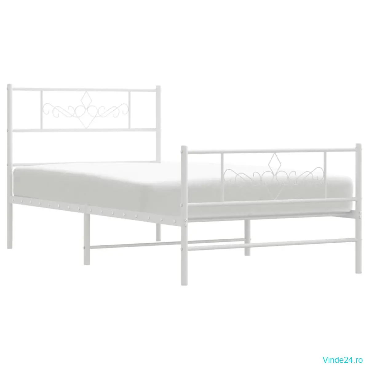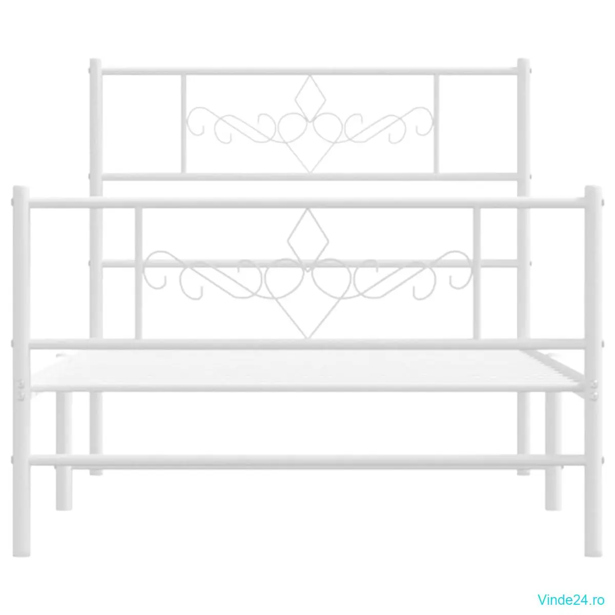 vidaXL Cadru de pat metalic cu tăblie de cap/picioare, alb, 75x190 cm