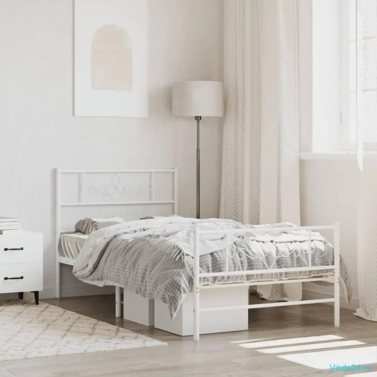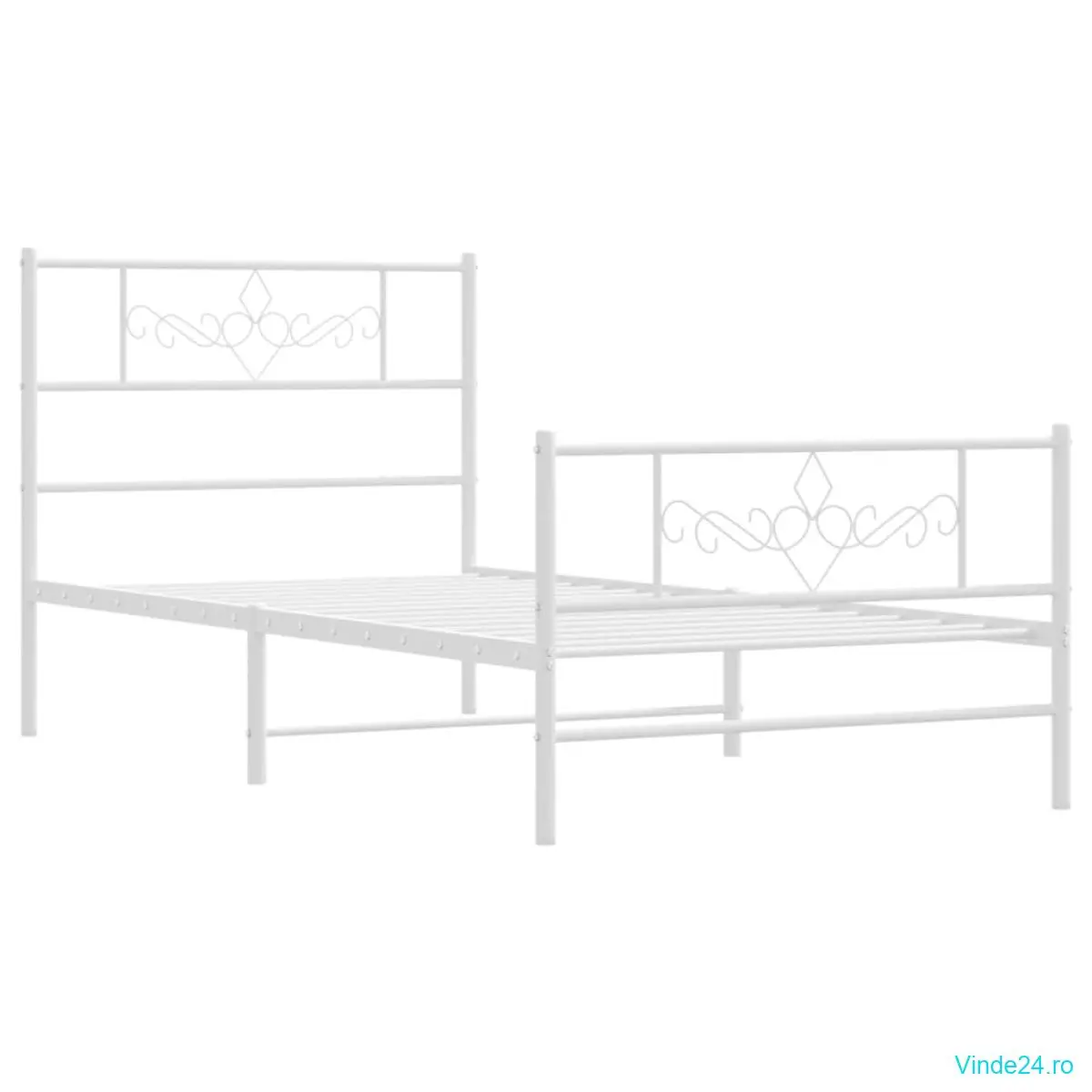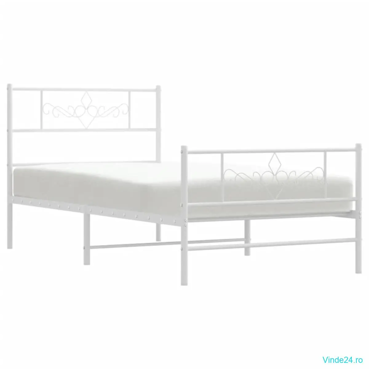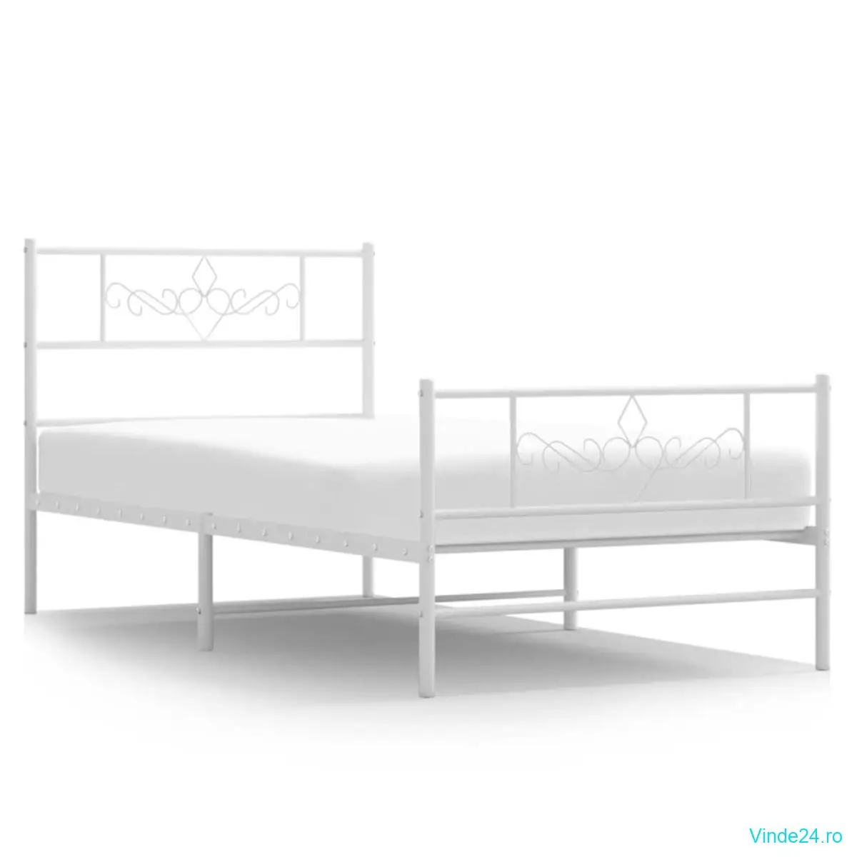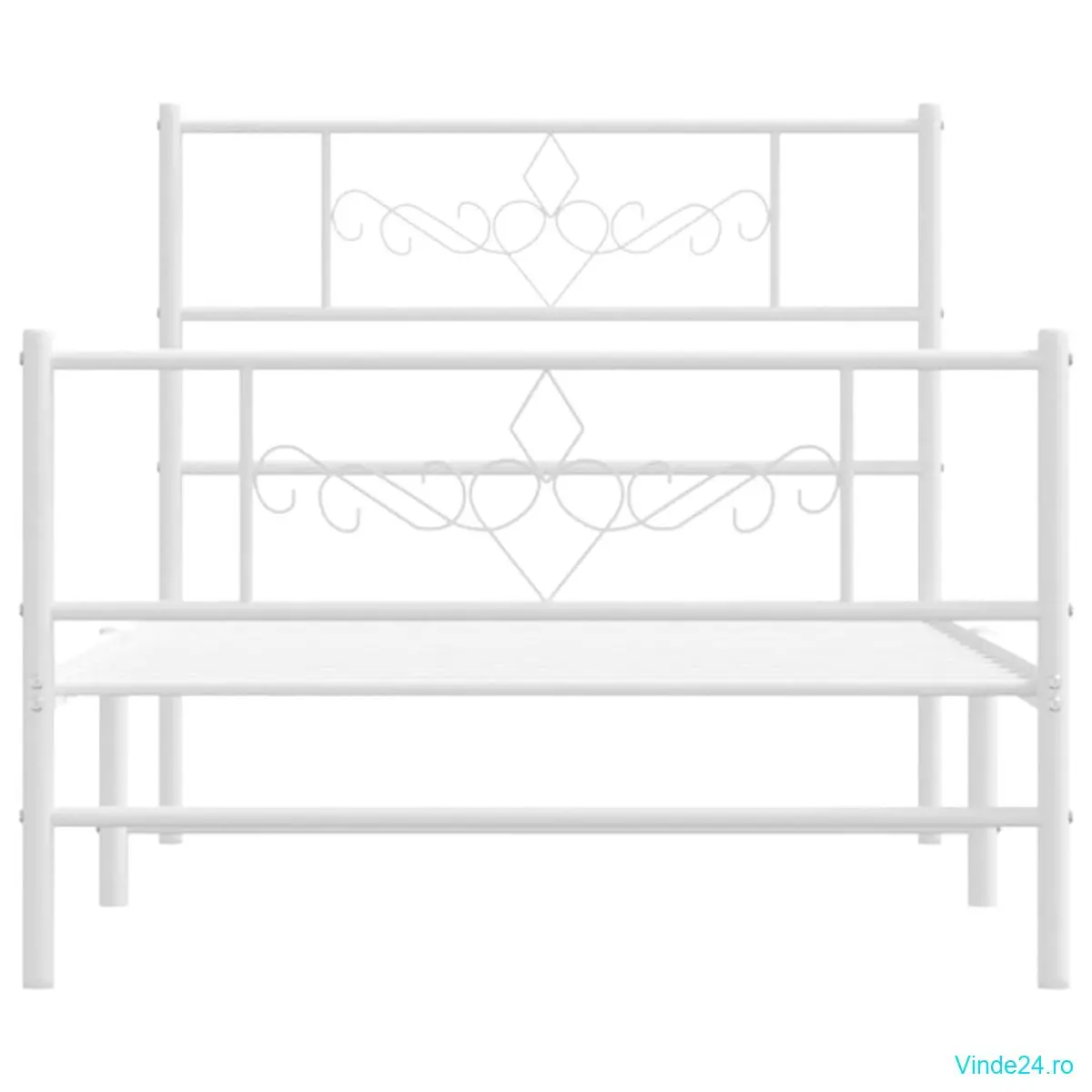 vidaXL Cadru de pat metalic cu tăblie de cap/picioare, alb, 90x190 cm