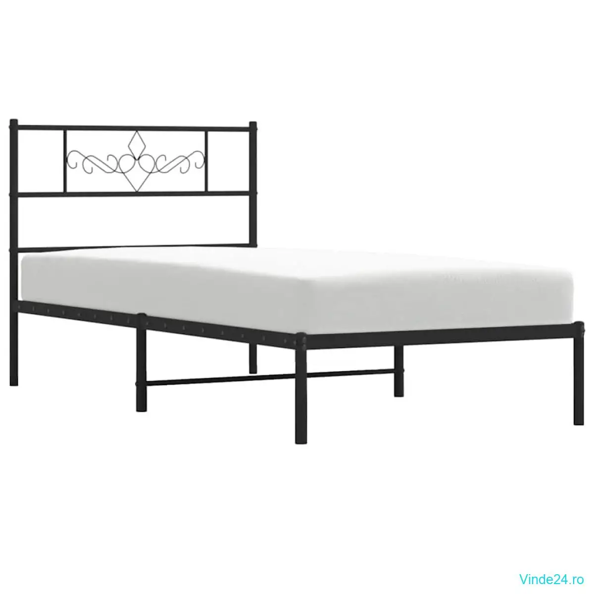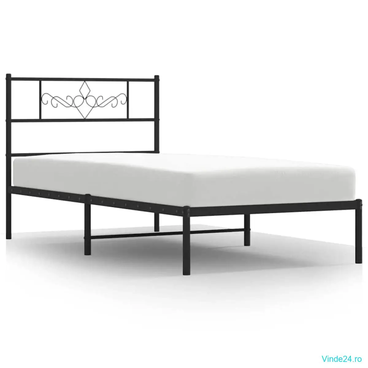 vidaXL Cadru de pat metalic cu tăblie, negru, 100x190 cm