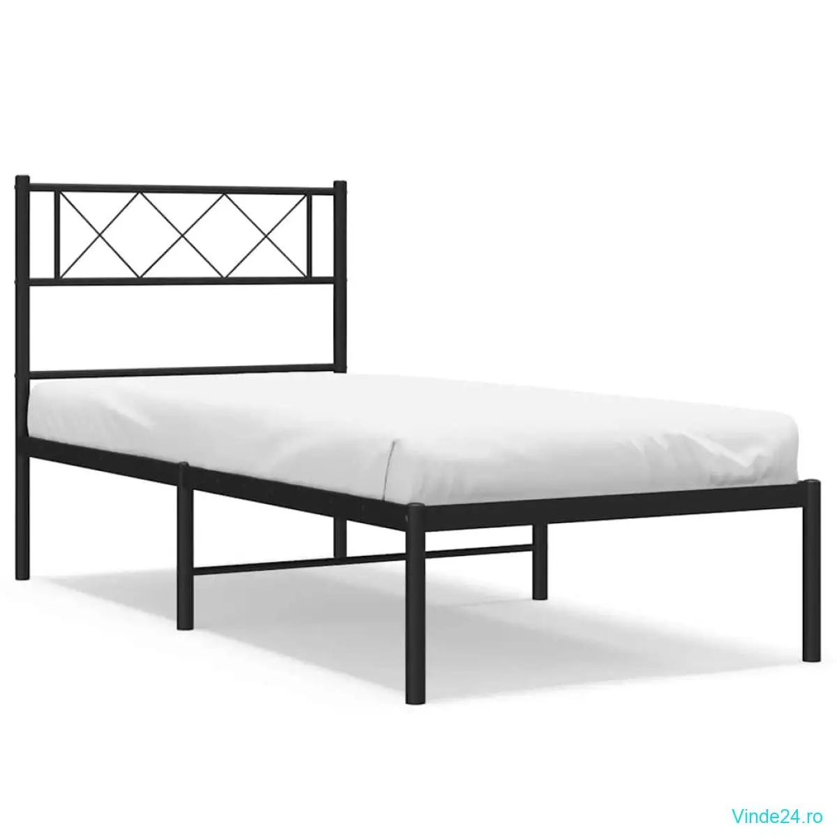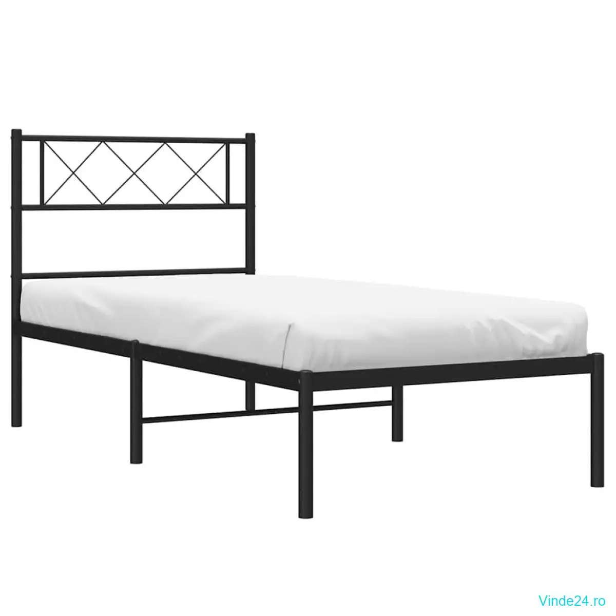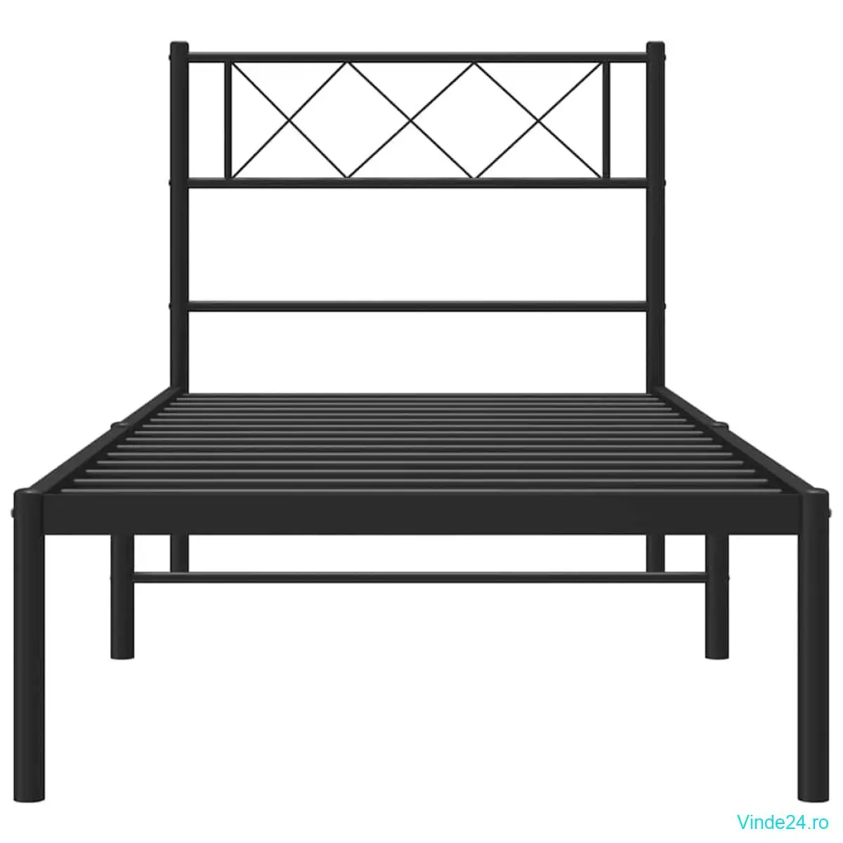 vidaXL Cadru de pat metalic cu tăblie, negru, 75x190 cm