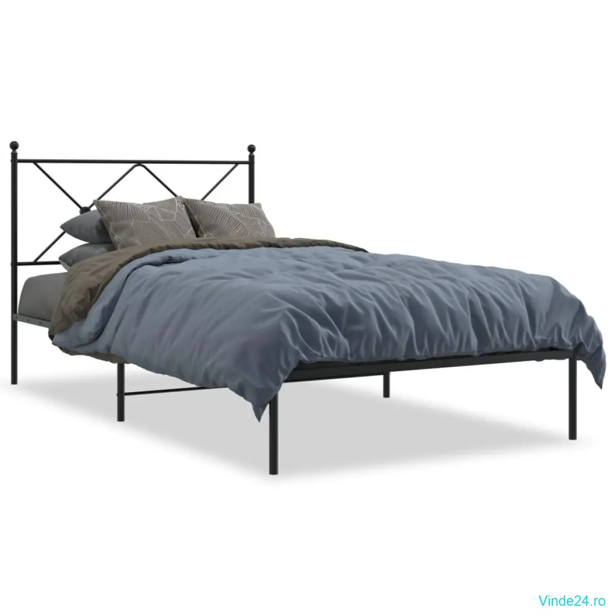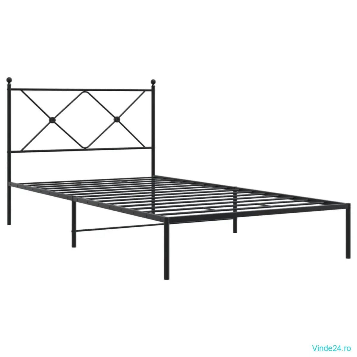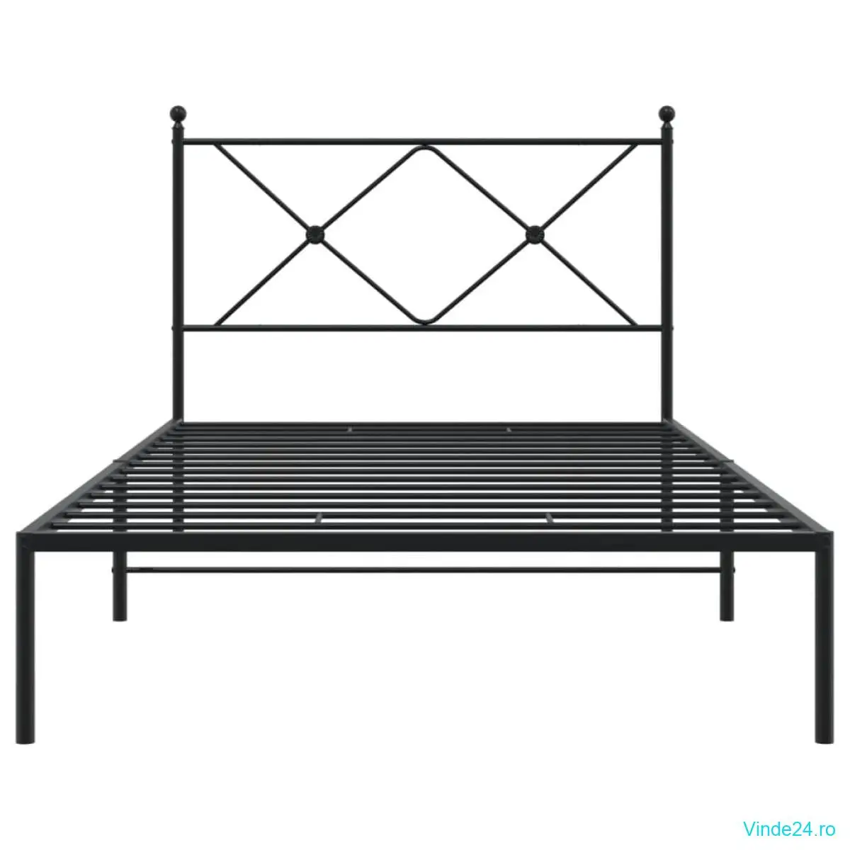vidaXL Cadru de pat metalic cu tăblie, negru, 100x190 cm