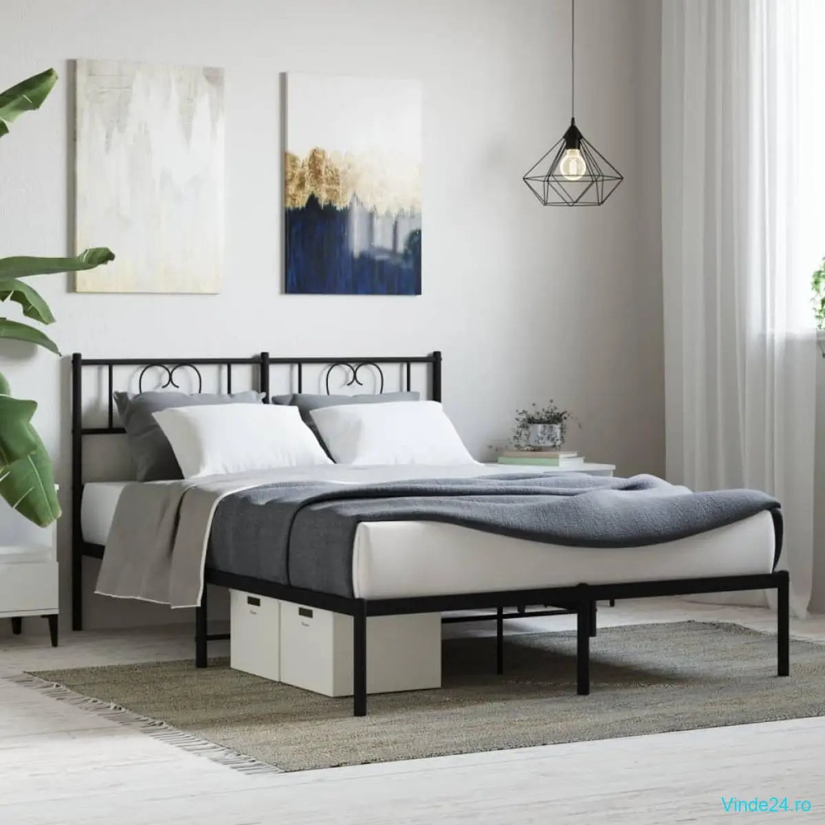 - Lamele și picioarele metalice: Cadrul de pat metalic este completat cu șipci metalice și picioare centrale, pentru a oferi saltelei dvs. suportul și respirabilitatea atât de necesare.
