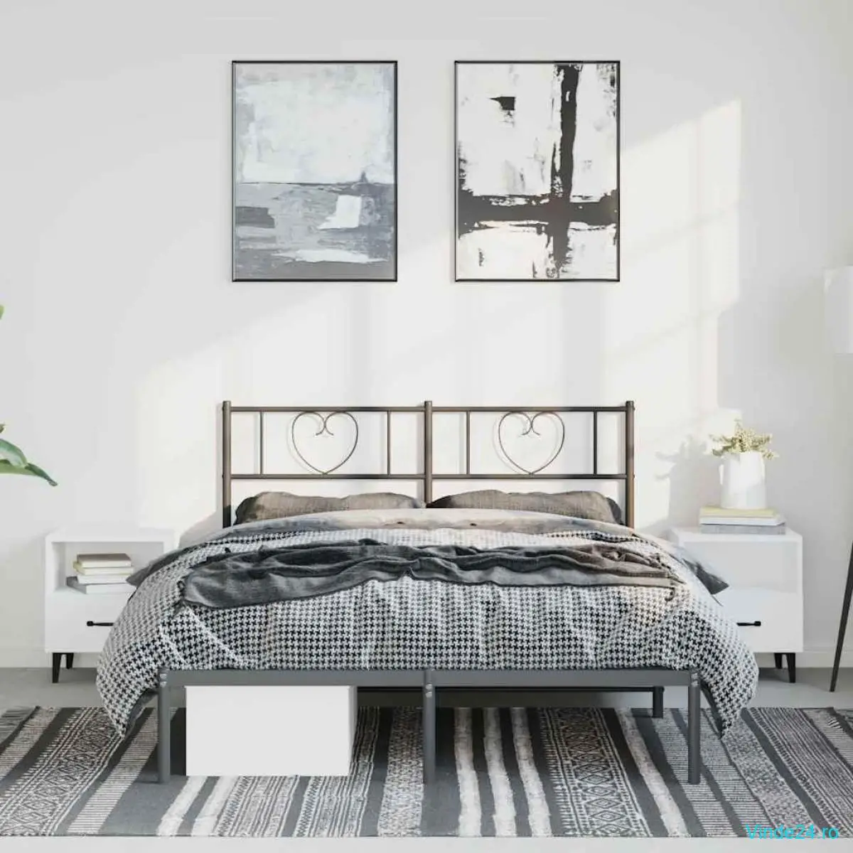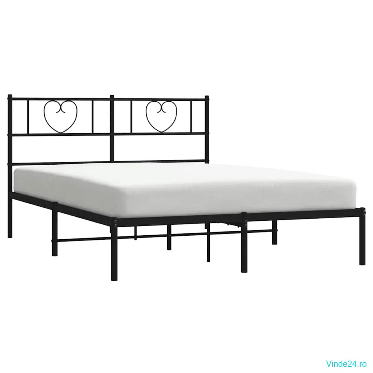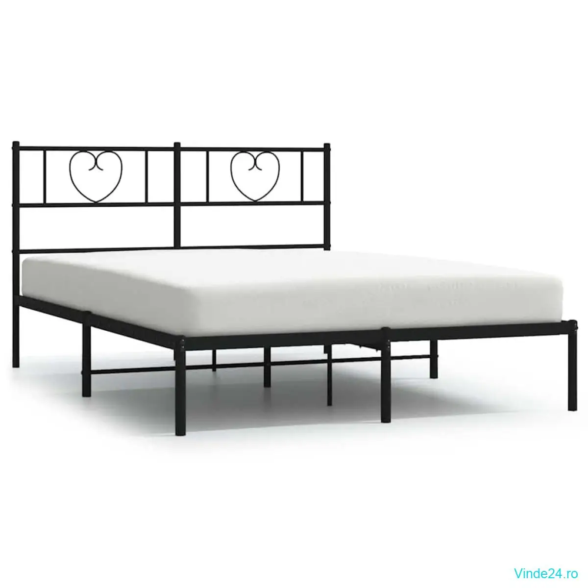 vidaXL Cadru de pat metalic cu tăblie, negru, 135x190 cm