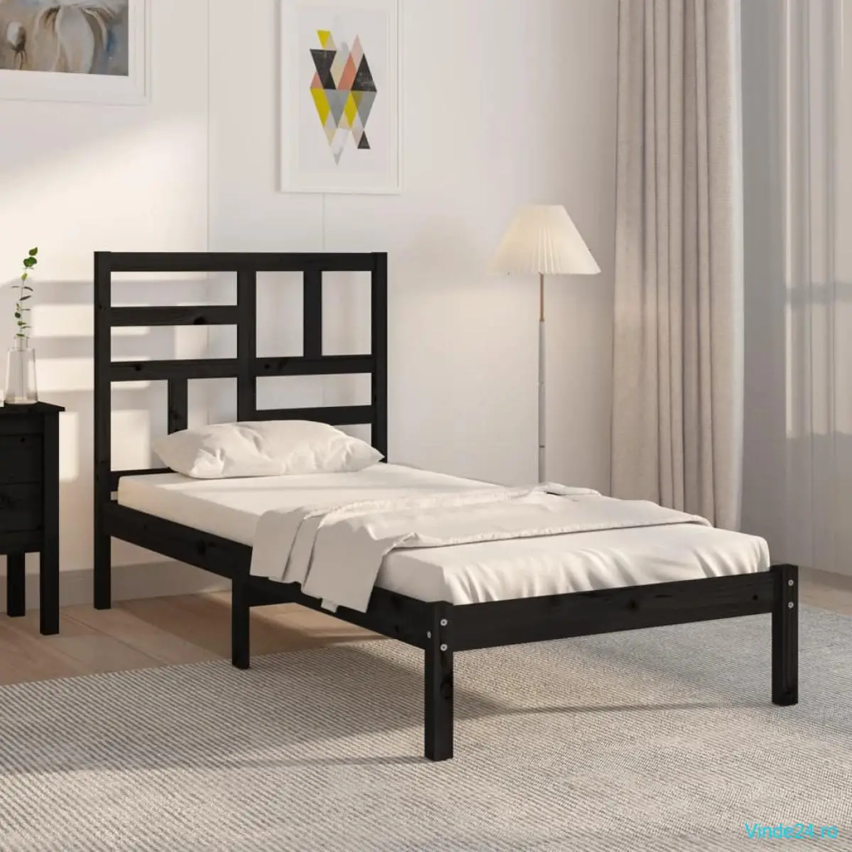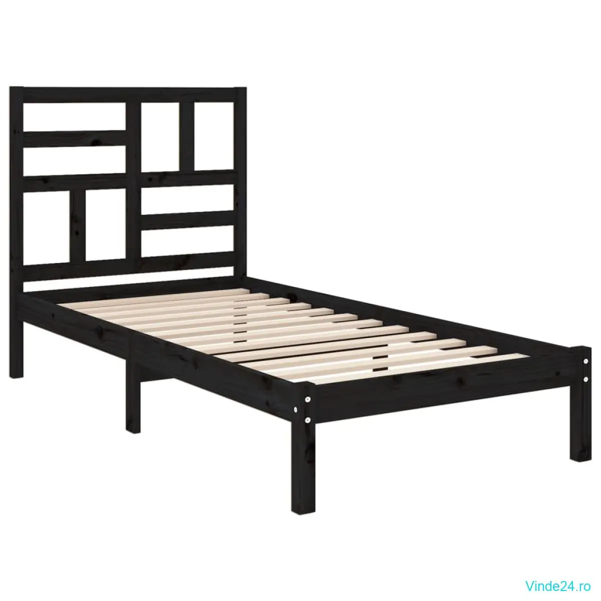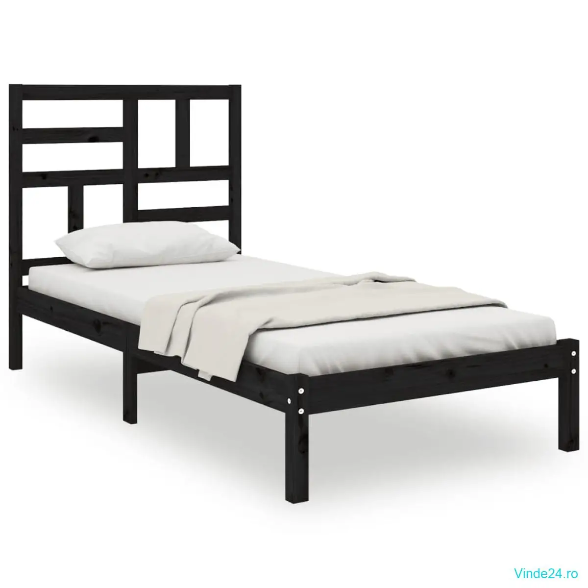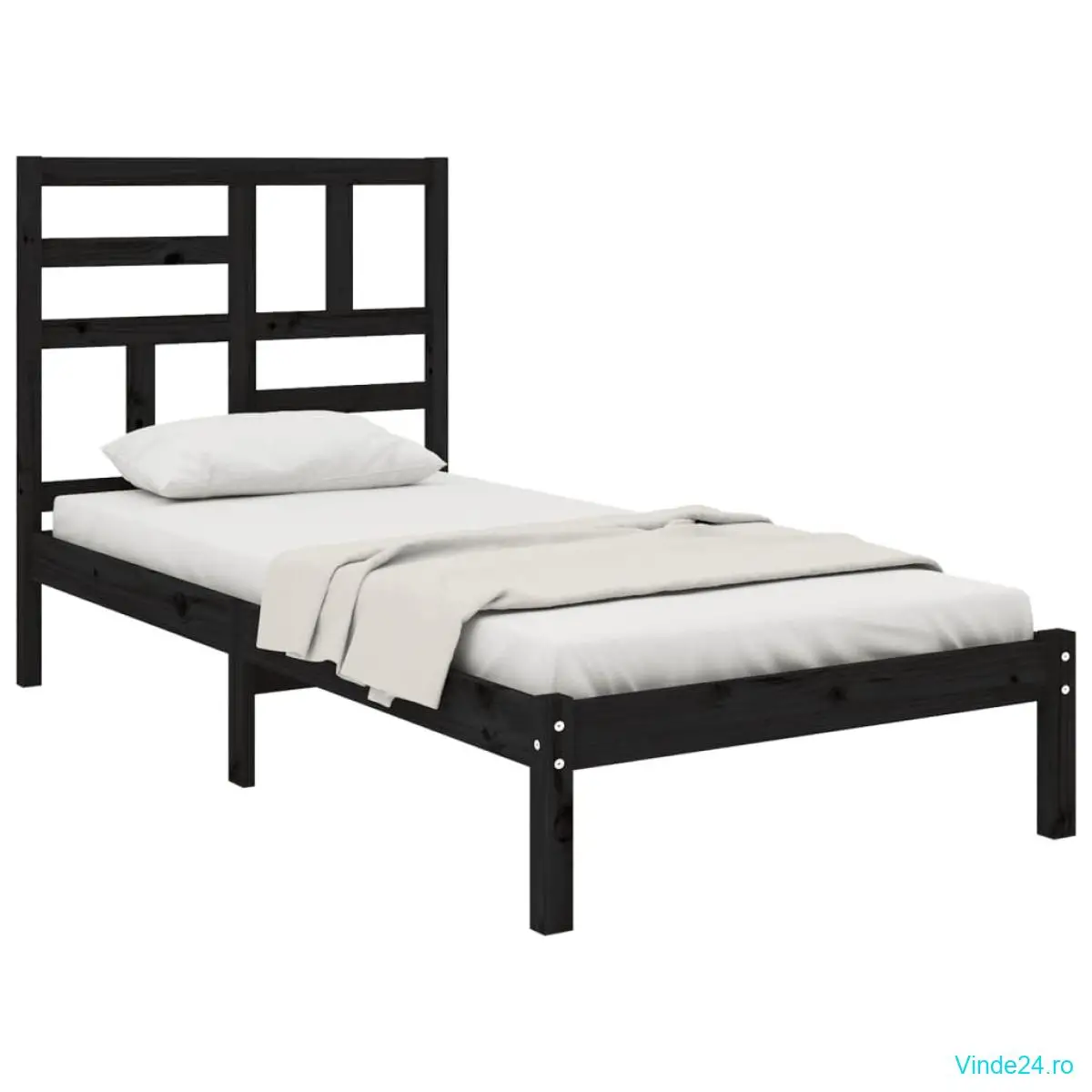 vidaXL Cadru de pat mic single, negru, 75x190 cm, lemn masiv