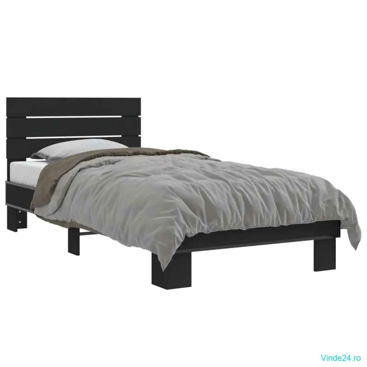 vidaXL Cadru de pat, negru, 100x200 cm, lemn prelucrat și metal