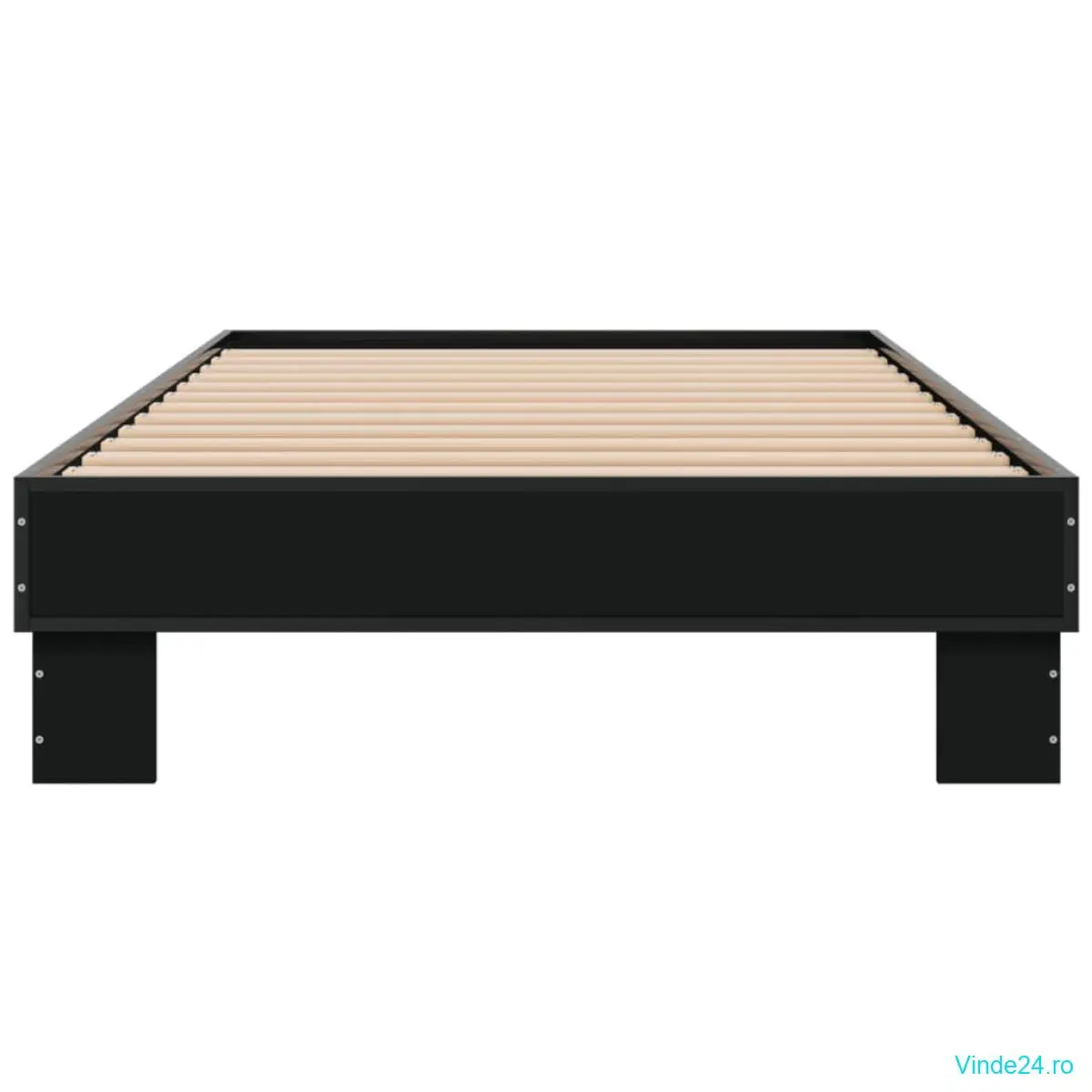 vidaXL Cadru de pat, negru, 100x200 cm, lemn prelucrat și metal