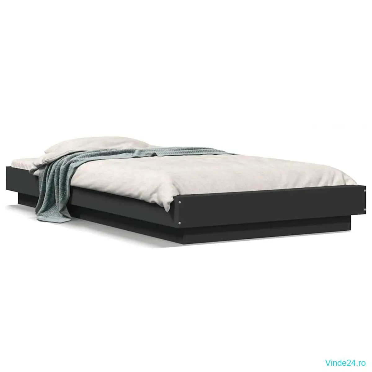 vidaXL Cadru de pat, negru, 100x200 cm, lemn prelucrat