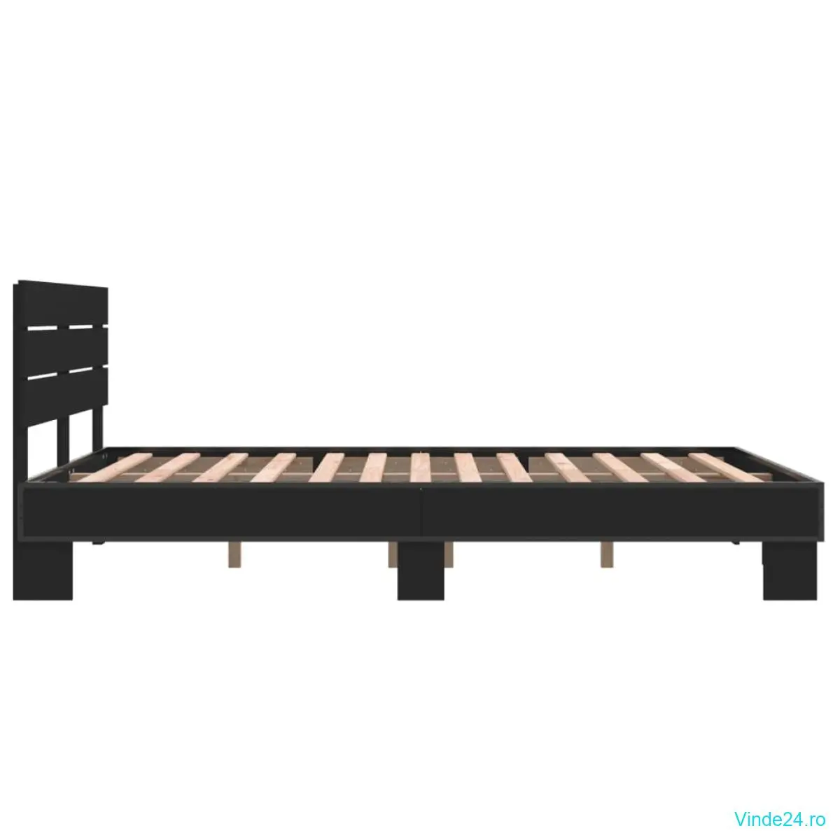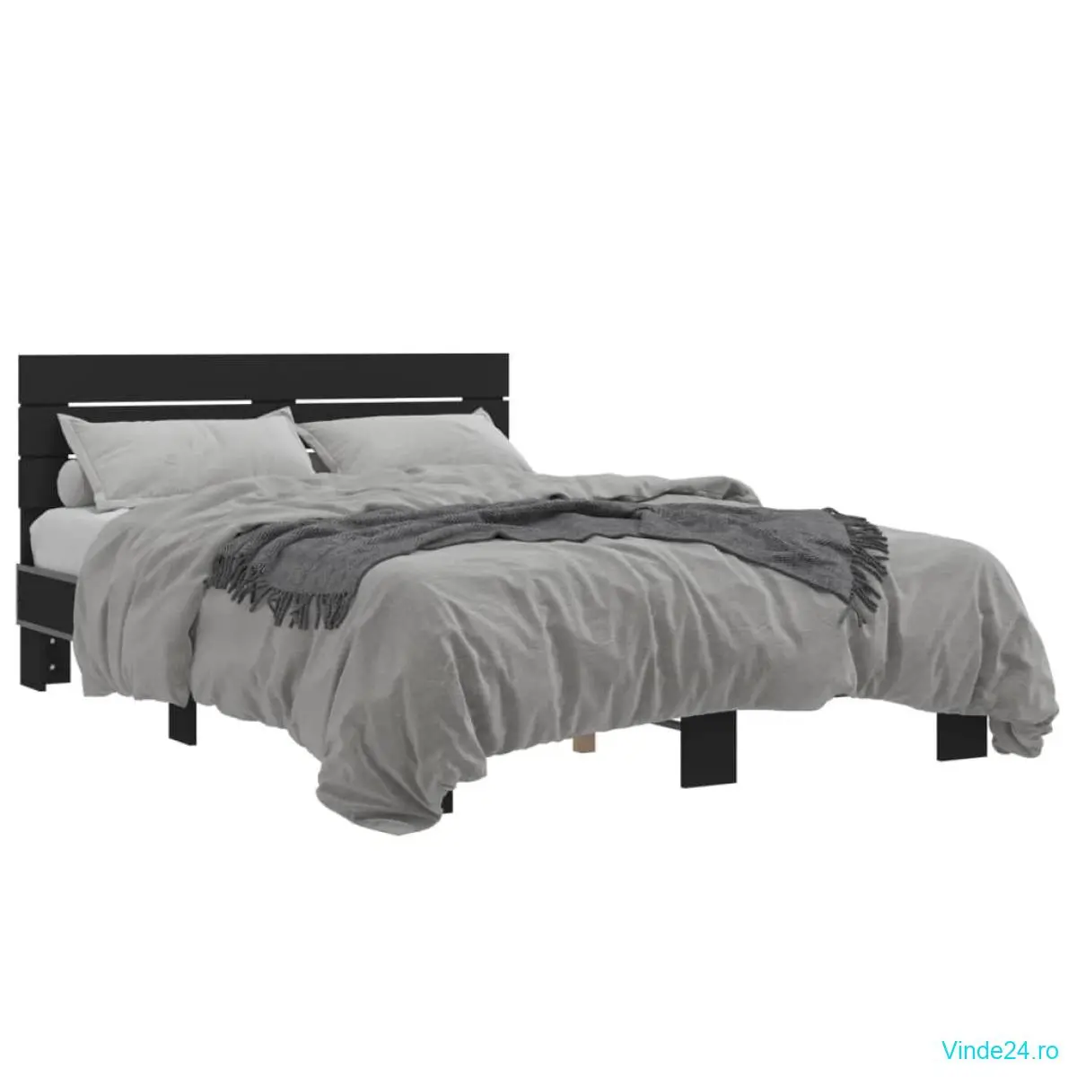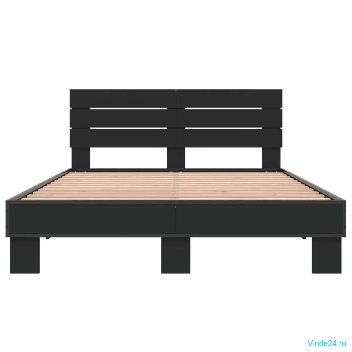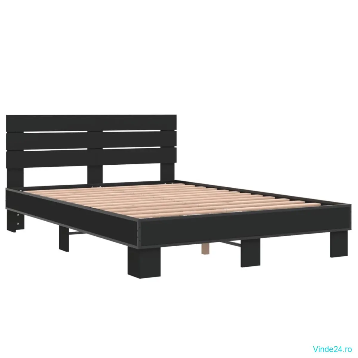 vidaXL Cadru de pat, negru, 120x200 cm, lemn prelucrat și metal