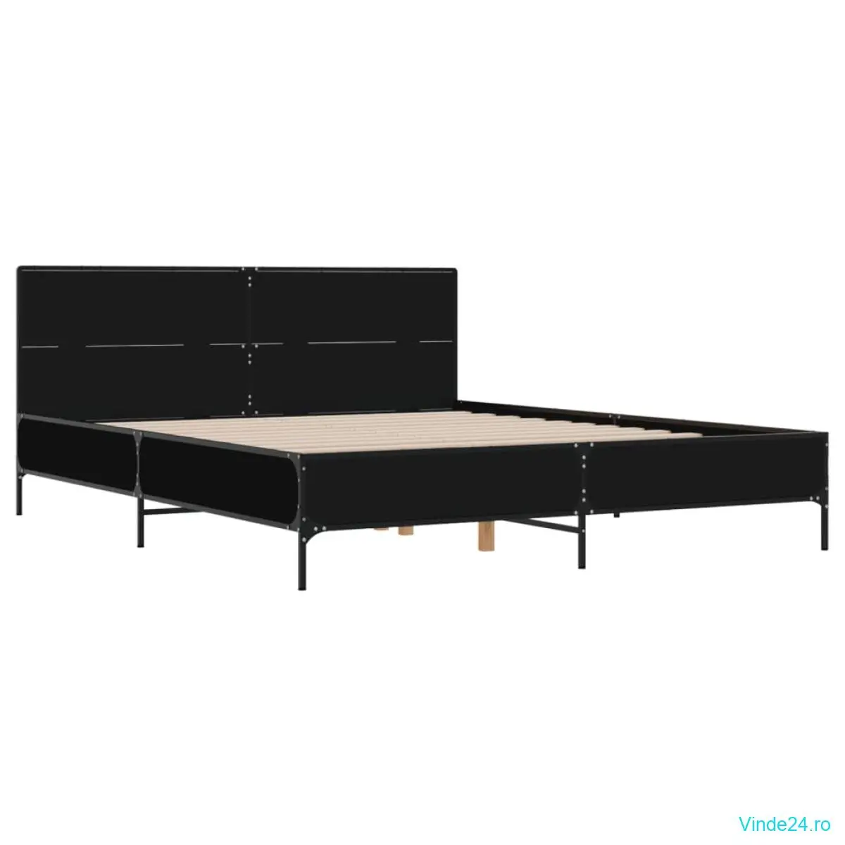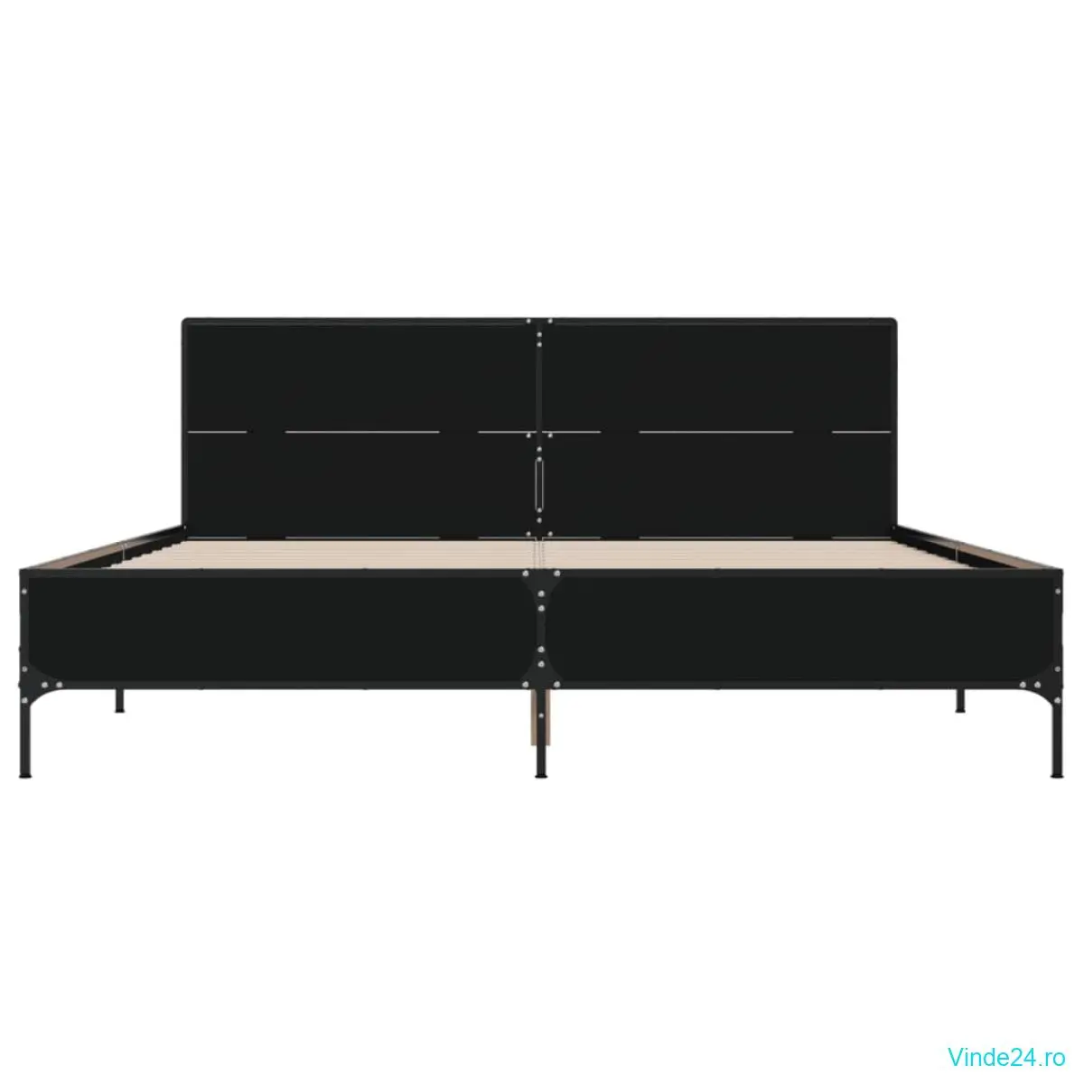 vidaXL Cadru de pat, negru, 140x200 cm, lemn prelucrat și metal