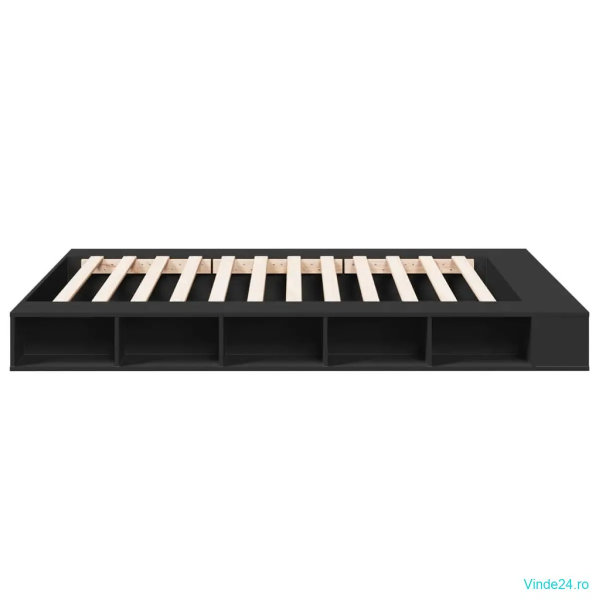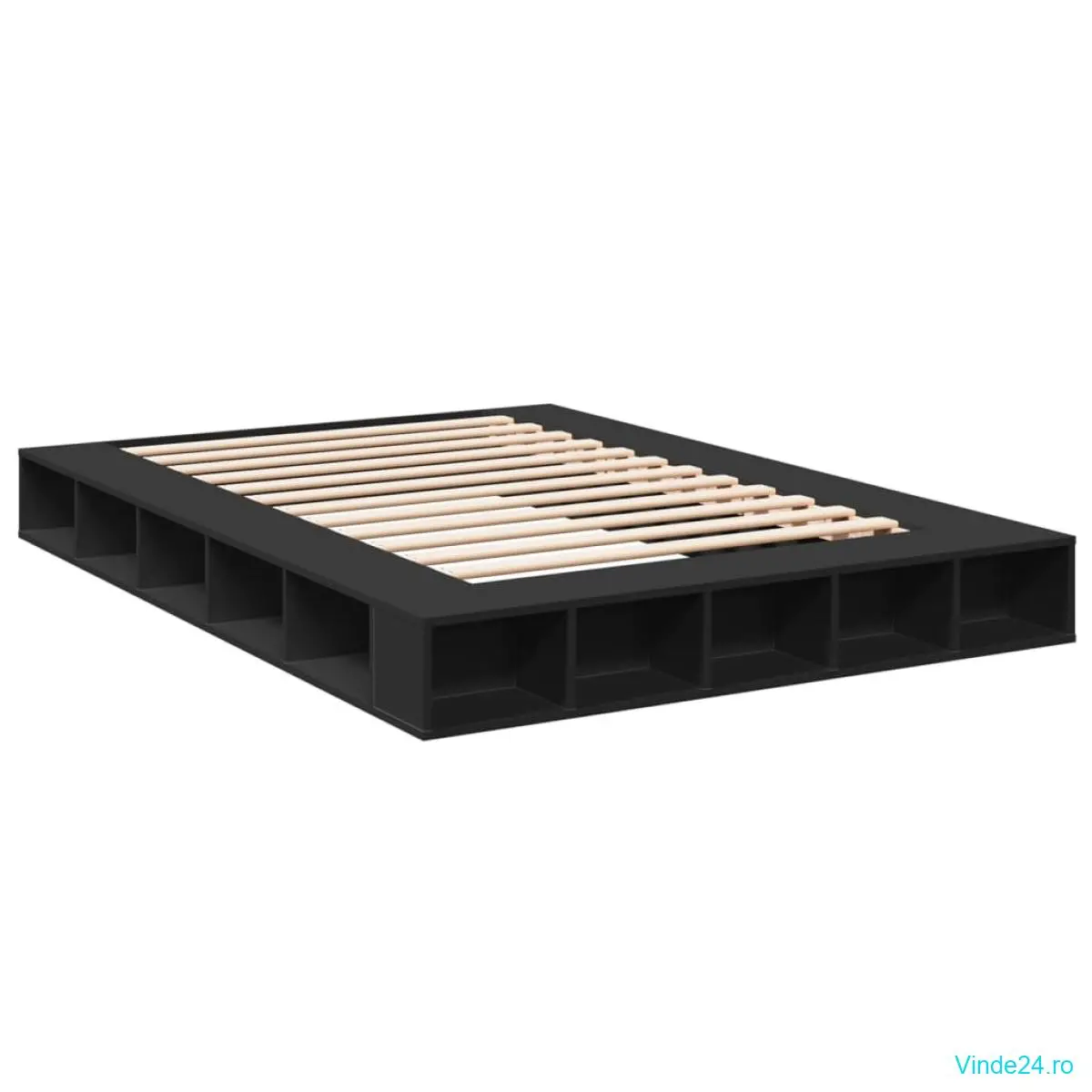 vidaXL Cadru de pat, negru, 140x200 cm, lemn prelucrat