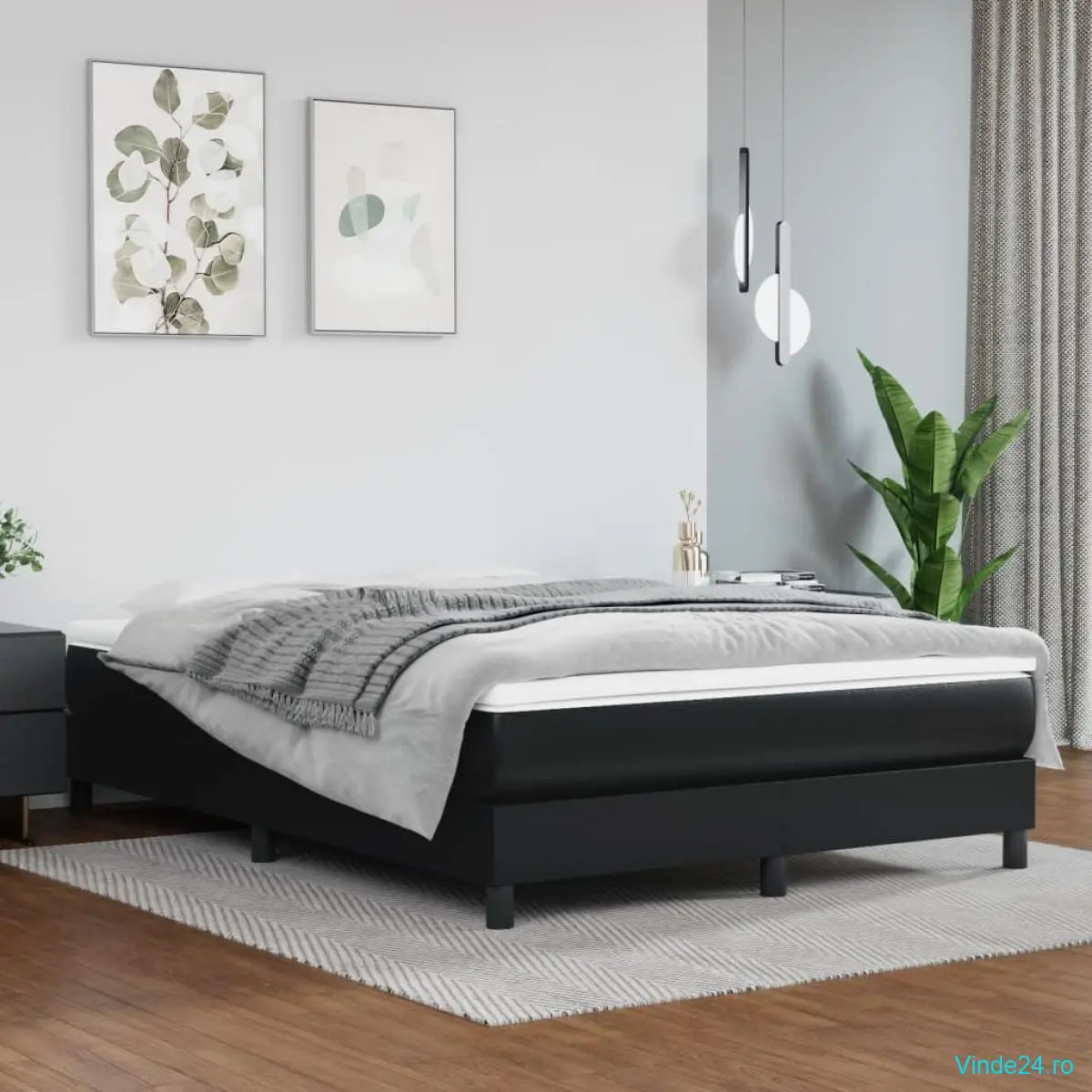 vidaXL Cadru de pat, negru, 140x200 cm, piele ecologică