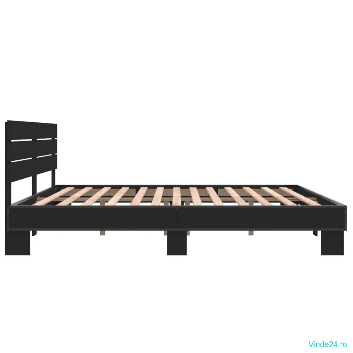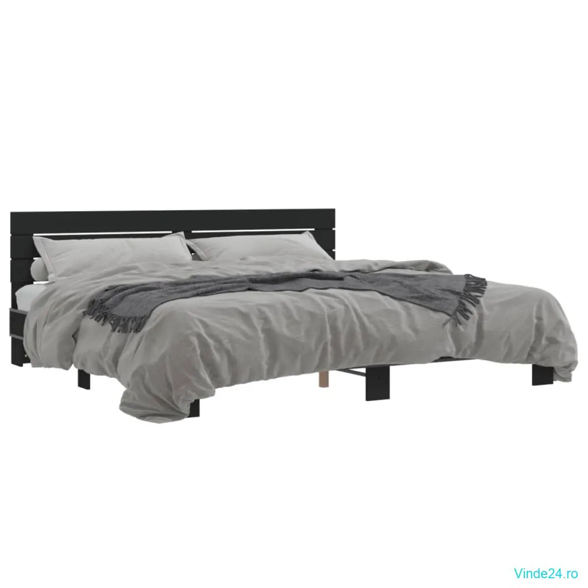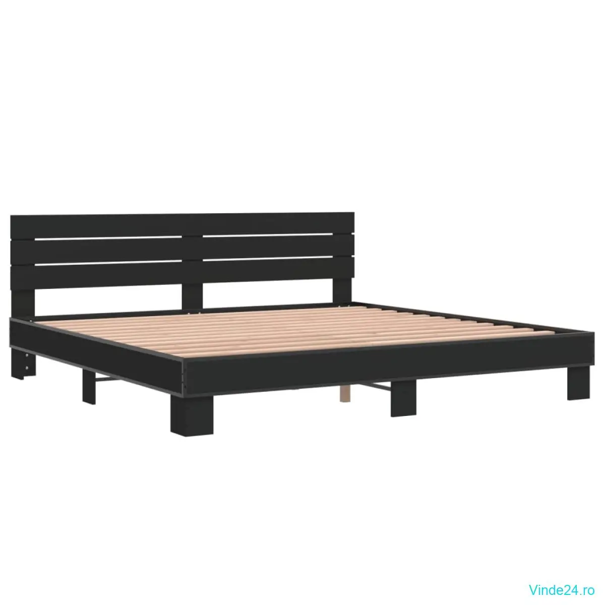 vidaXL Cadru de pat, negru, 200x200 cm, lemn prelucrat și metal