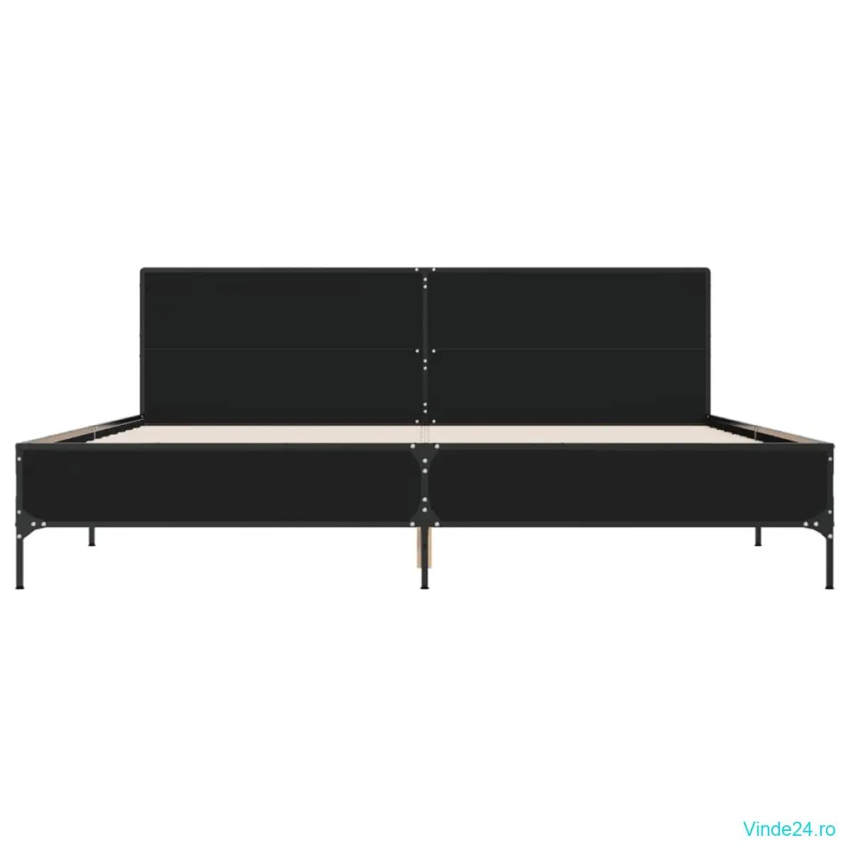 vidaXL Cadru de pat, negru, 200x200 cm, lemn prelucrat și metal