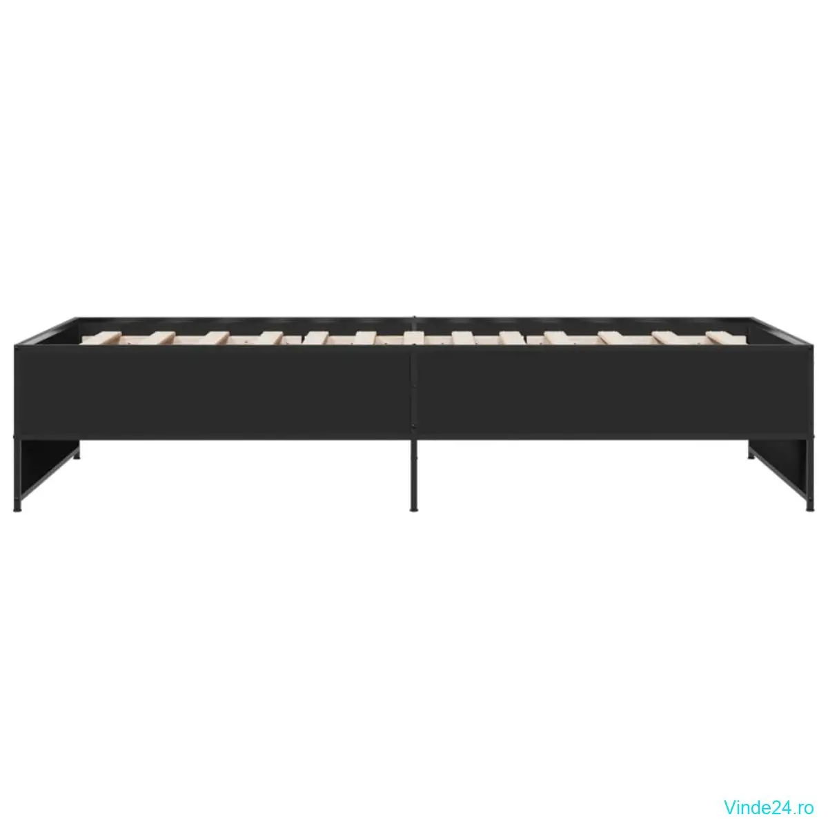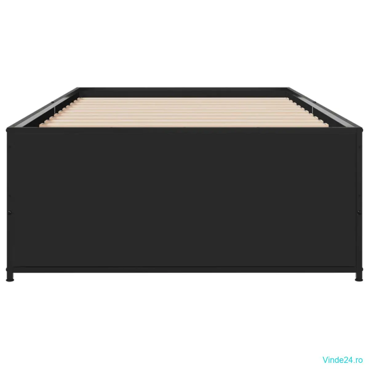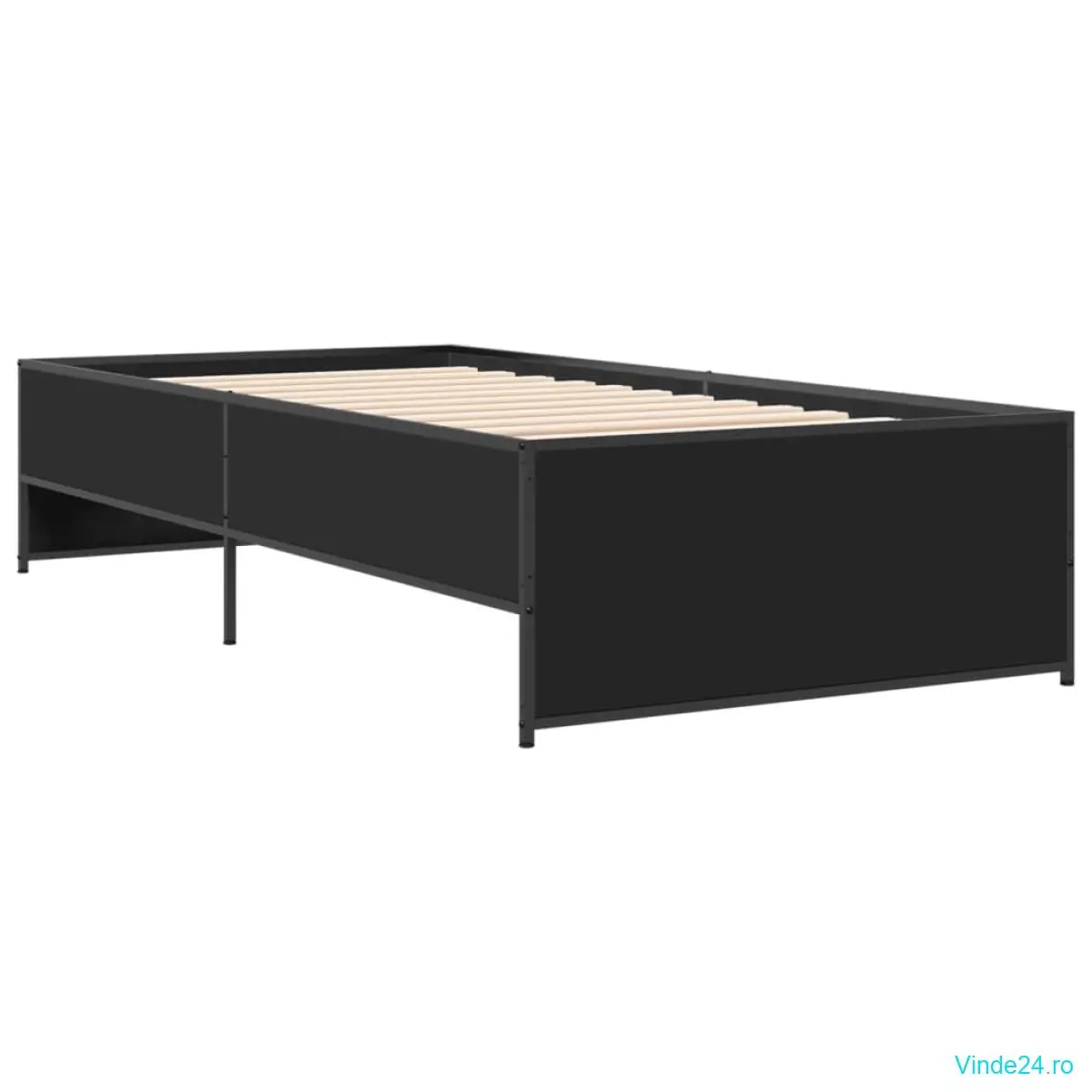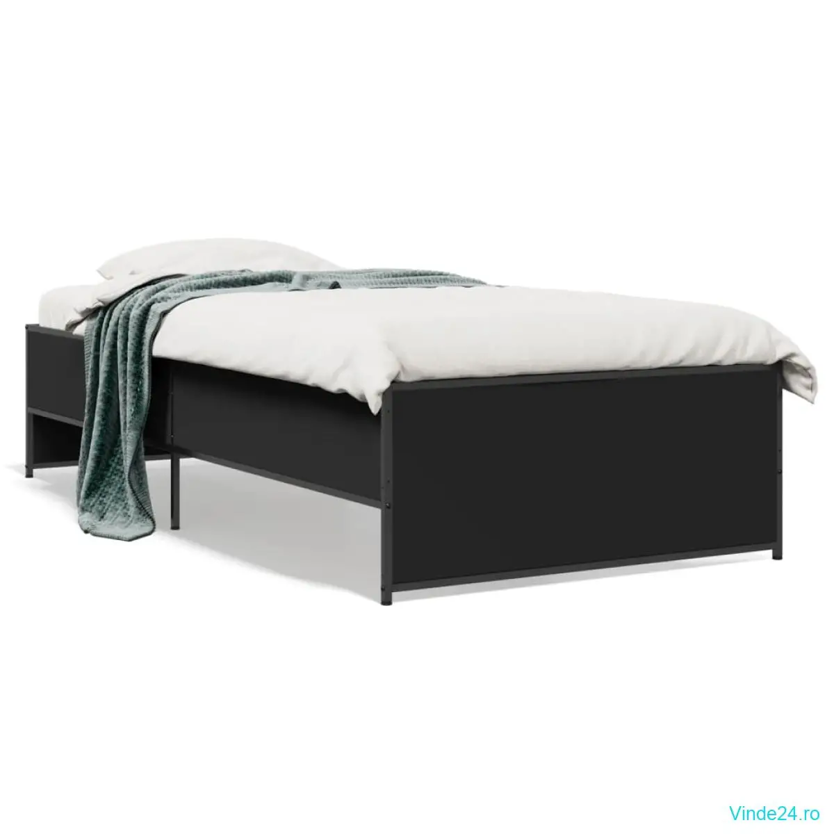 vidaXL Cadru de pat, negru, 75x190 cm, lemn prelucrat și metal