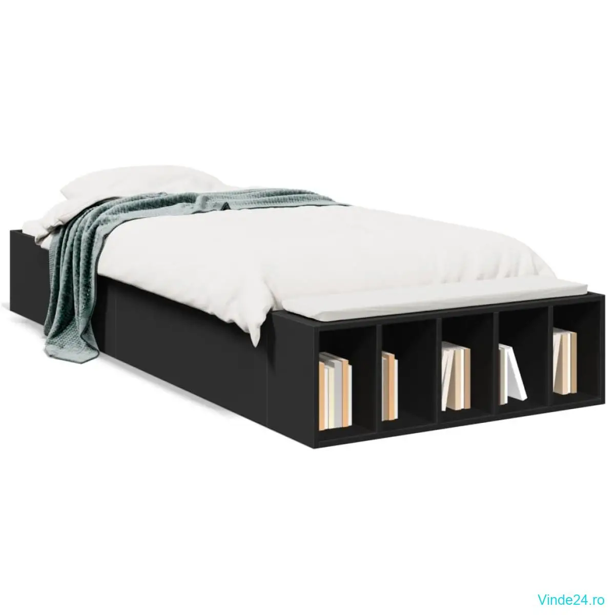 vidaXL Cadru de pat, negru, 75x190 cm, lemn prelucrat