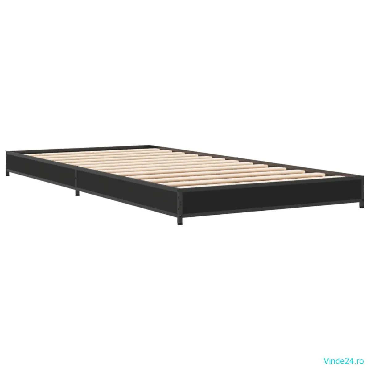 - Picioare metalice: Patul este susținut de picioare rezistente din metal, care îi asigură stabilitatea, siguranța și fermitatea.