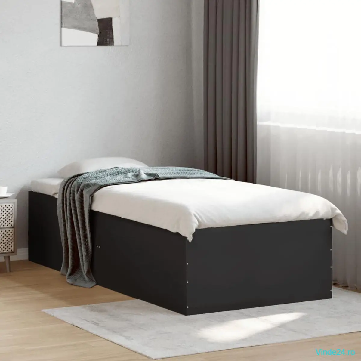 vidaXL Cadru de pat, negru, 90x190 cm, lemn prelucrat