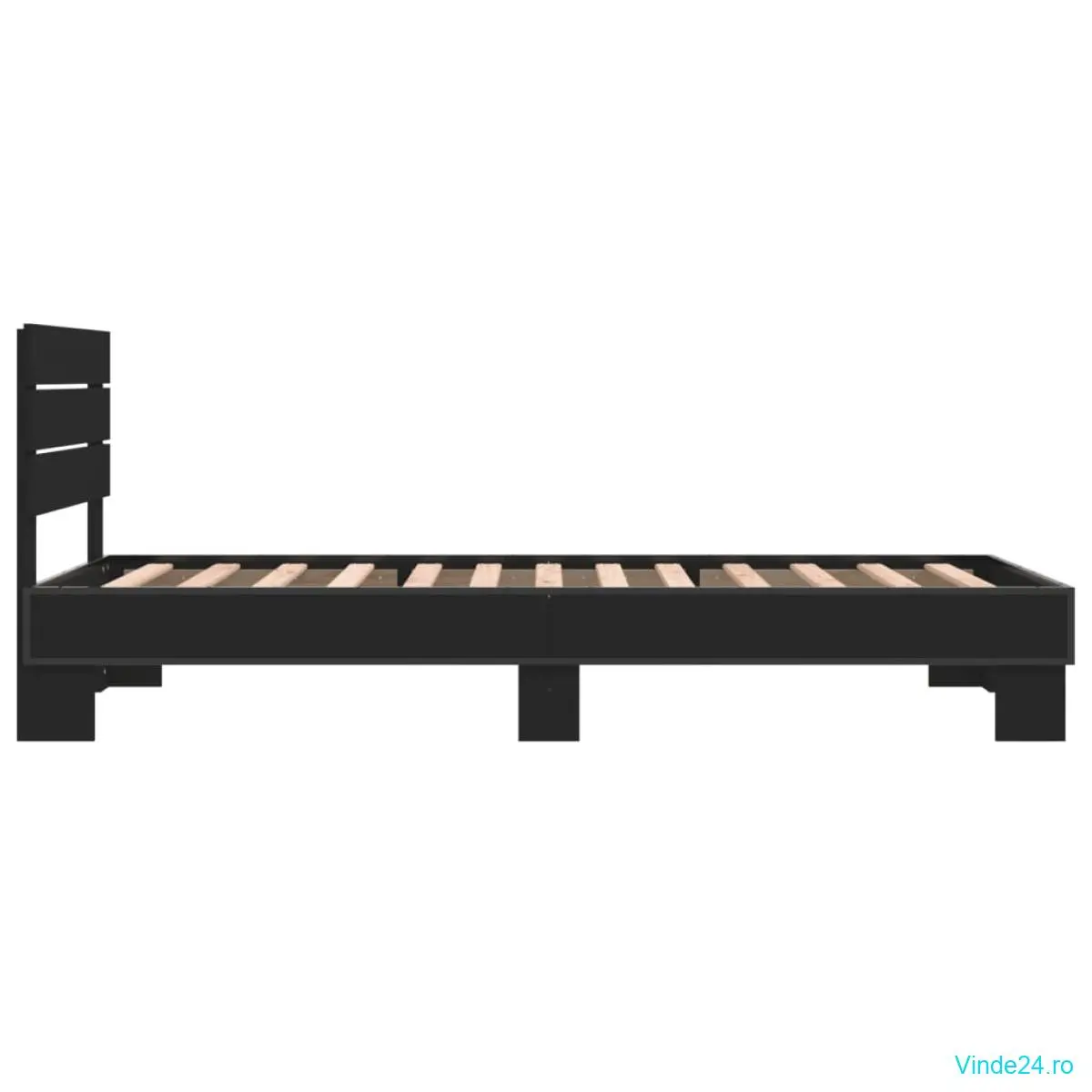 vidaXL Cadru de pat, negru, 90x200 cm, lemn prelucrat și metal