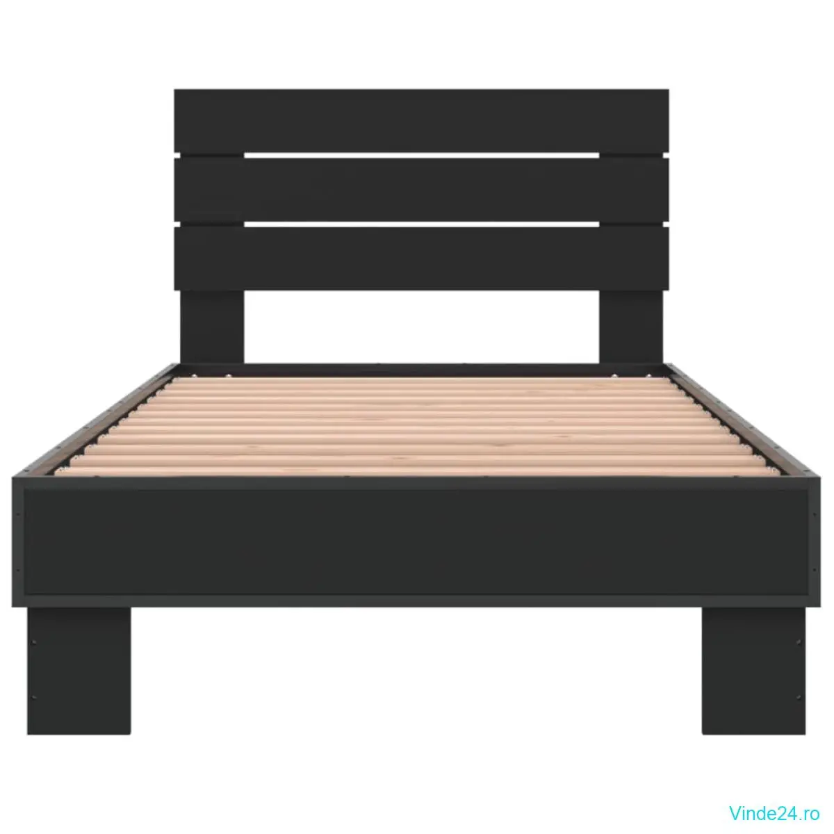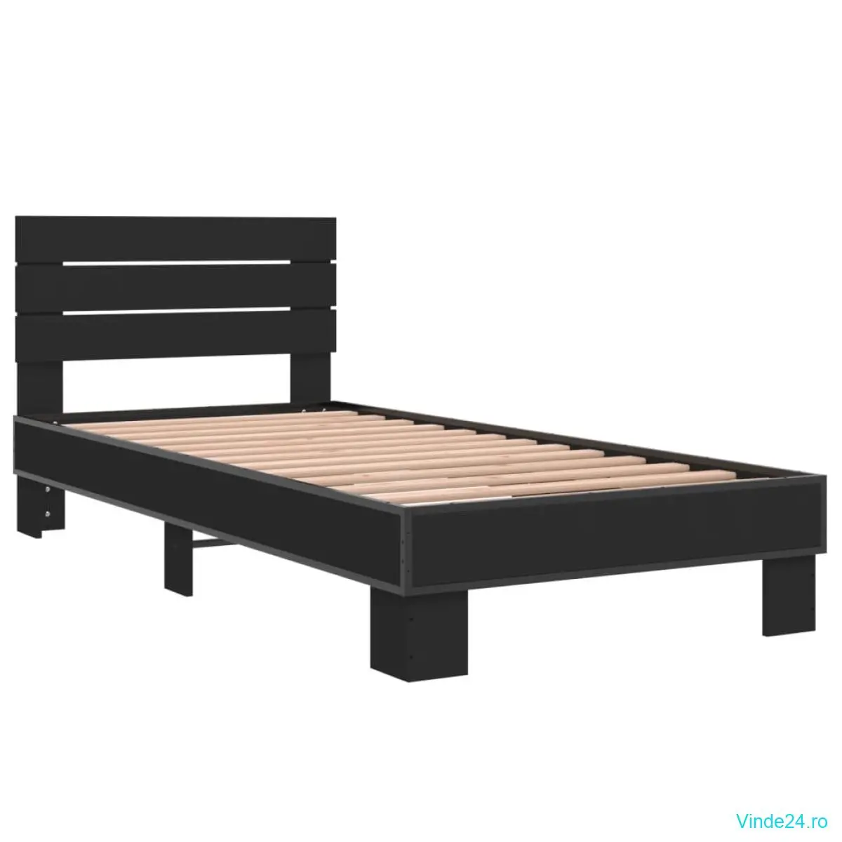 vidaXL Cadru de pat, negru, 90x200 cm, lemn prelucrat și metal