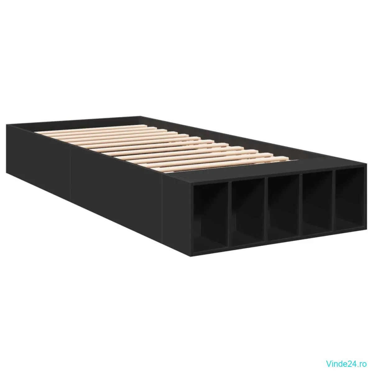vidaXL Cadru de pat, negru, 90x200 cm, lemn prelucrat