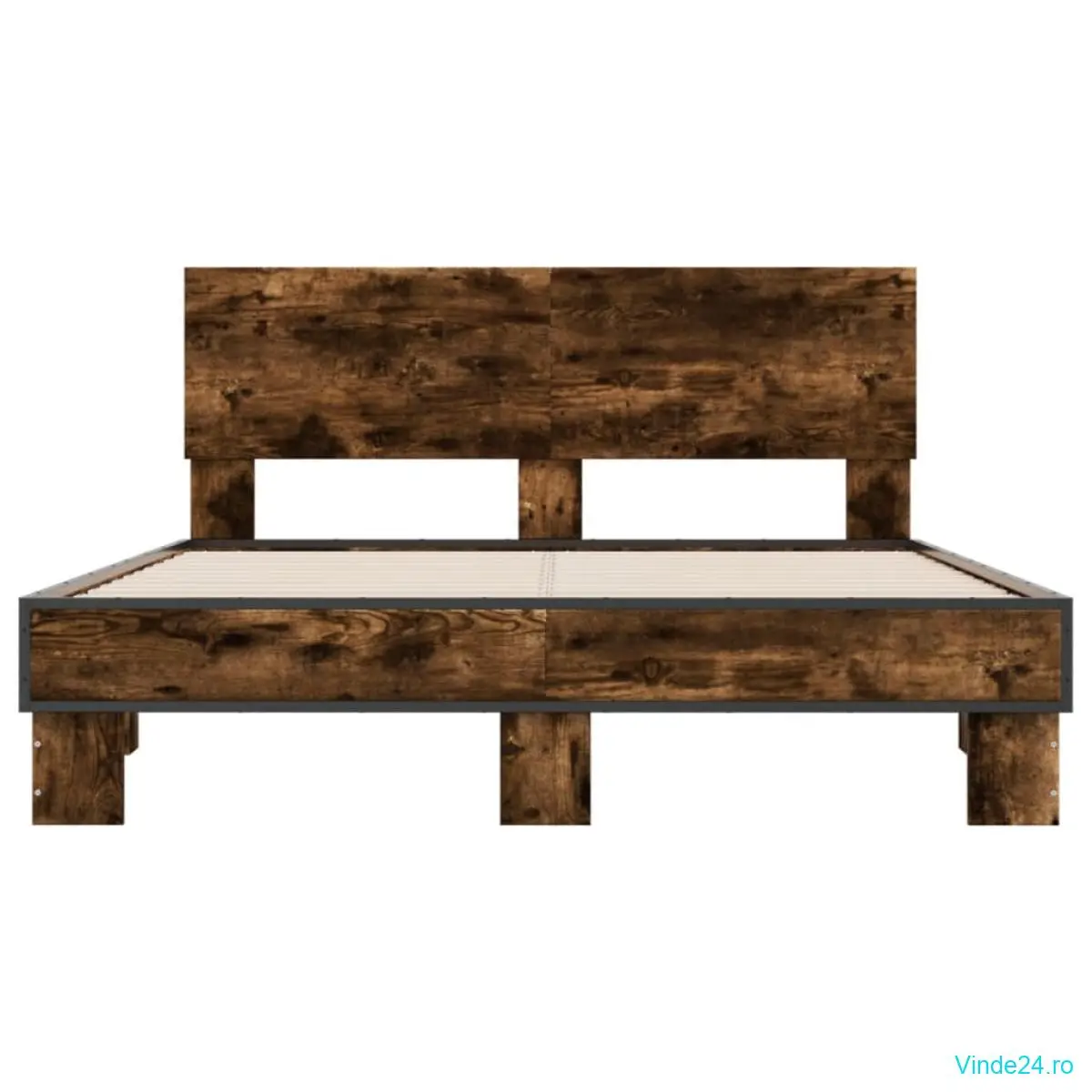 vidaXL Cadru de pat, stejar afumat 135x190 cm lemn prelucrat și metal