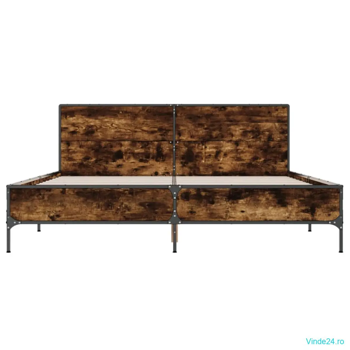 vidaXL Cadru de pat, stejar afumat 135x190 cm lemn prelucrat și metal