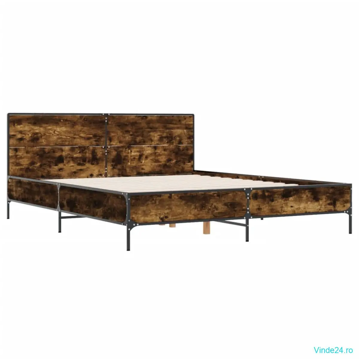 vidaXL Cadru de pat, stejar afumat 140x190 cm lemn prelucrat și metal