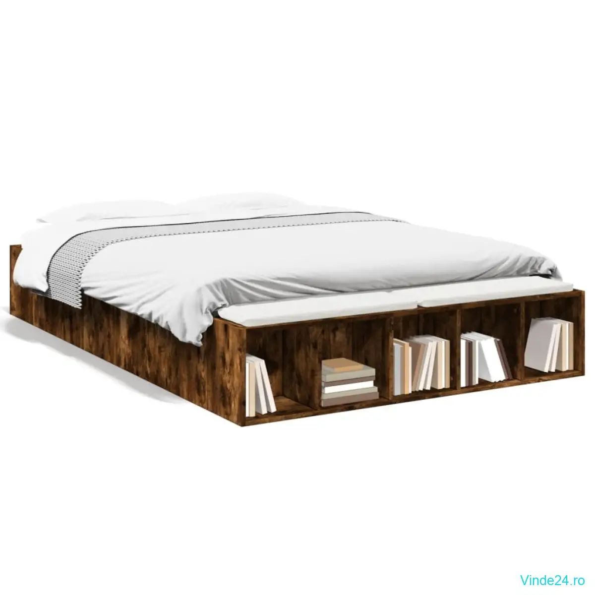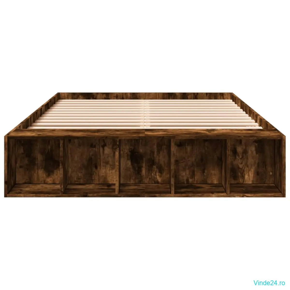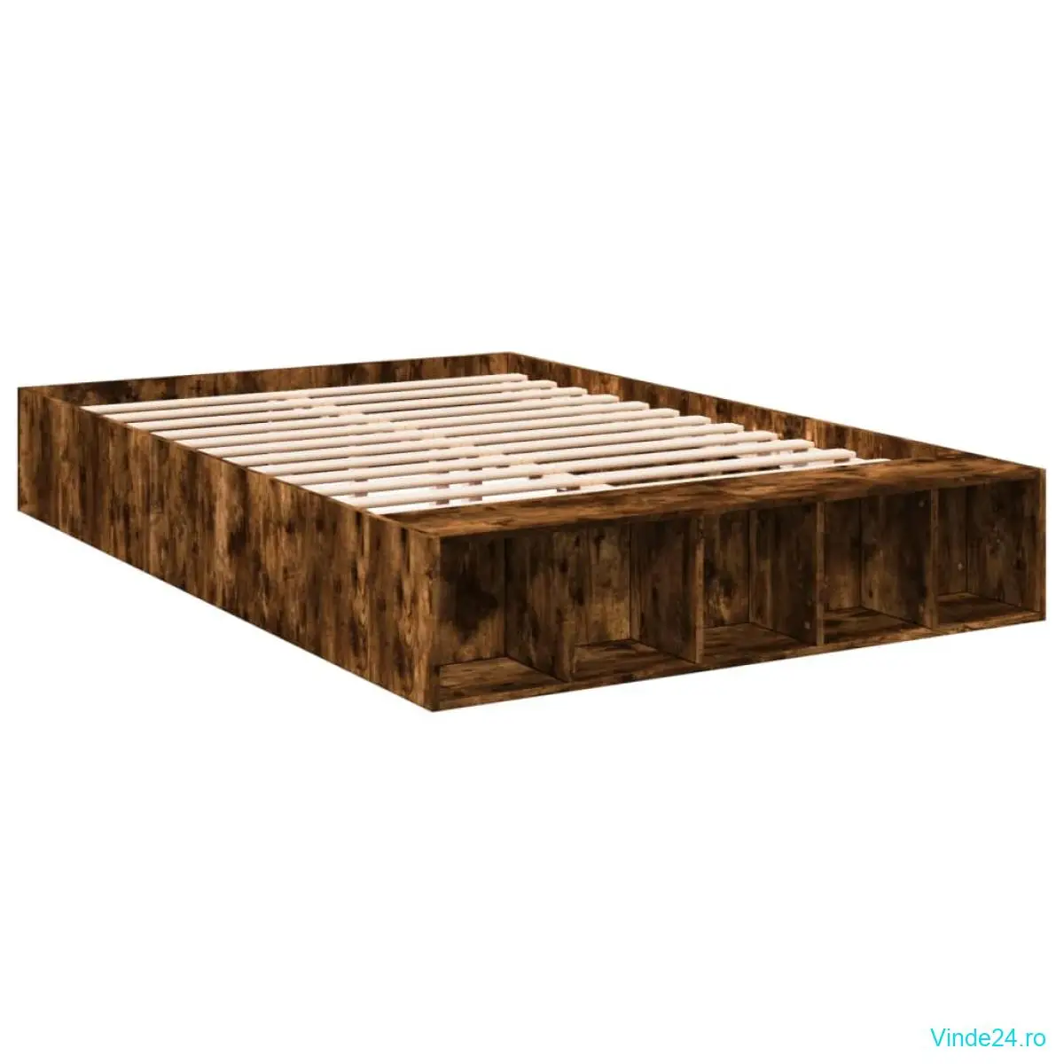 vidaXL Cadru de pat, stejar afumat, 140x190 cm, lemn prelucrat