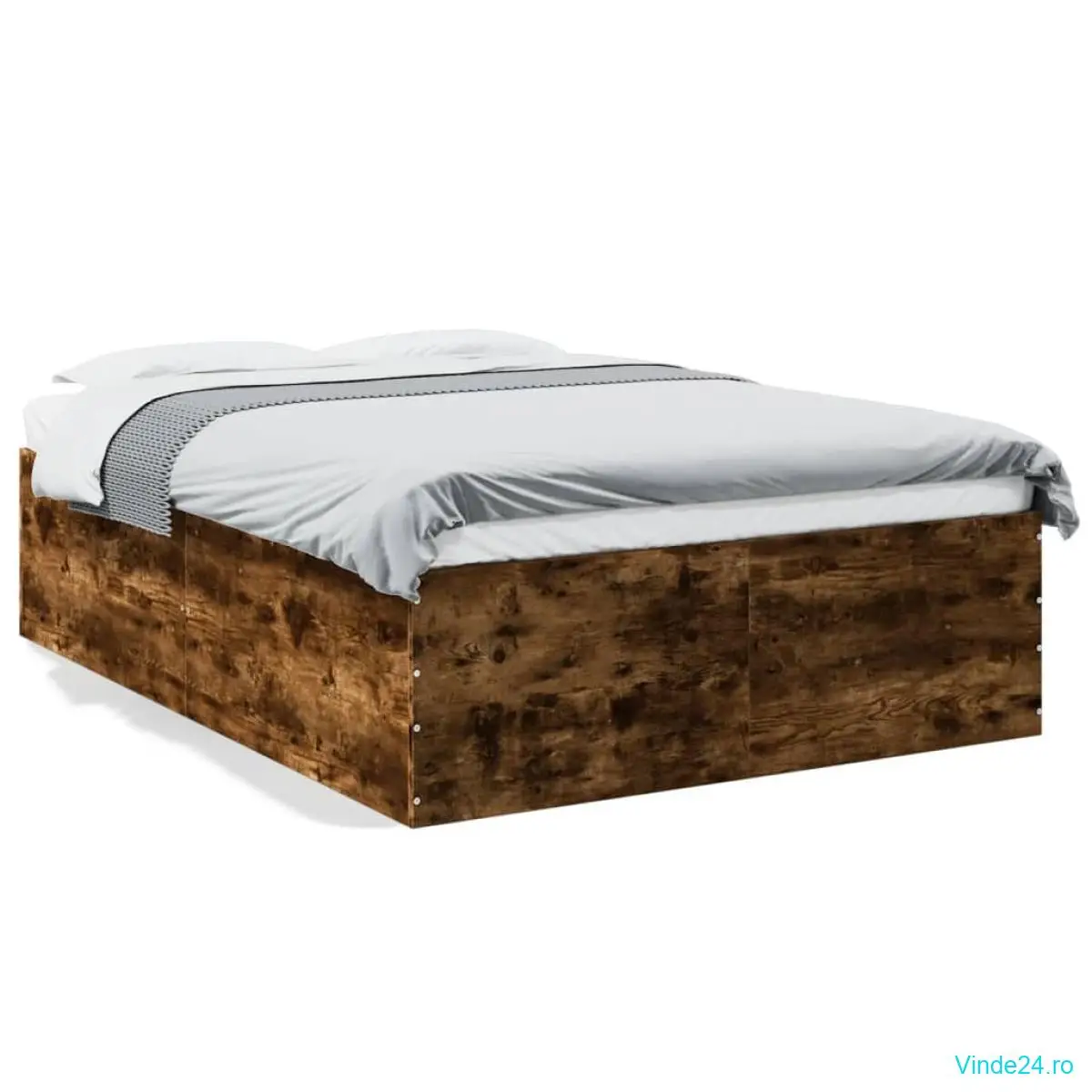 vidaXL Cadru de pat, stejar fumuriu, 140x200 cm, lemn prelucrat