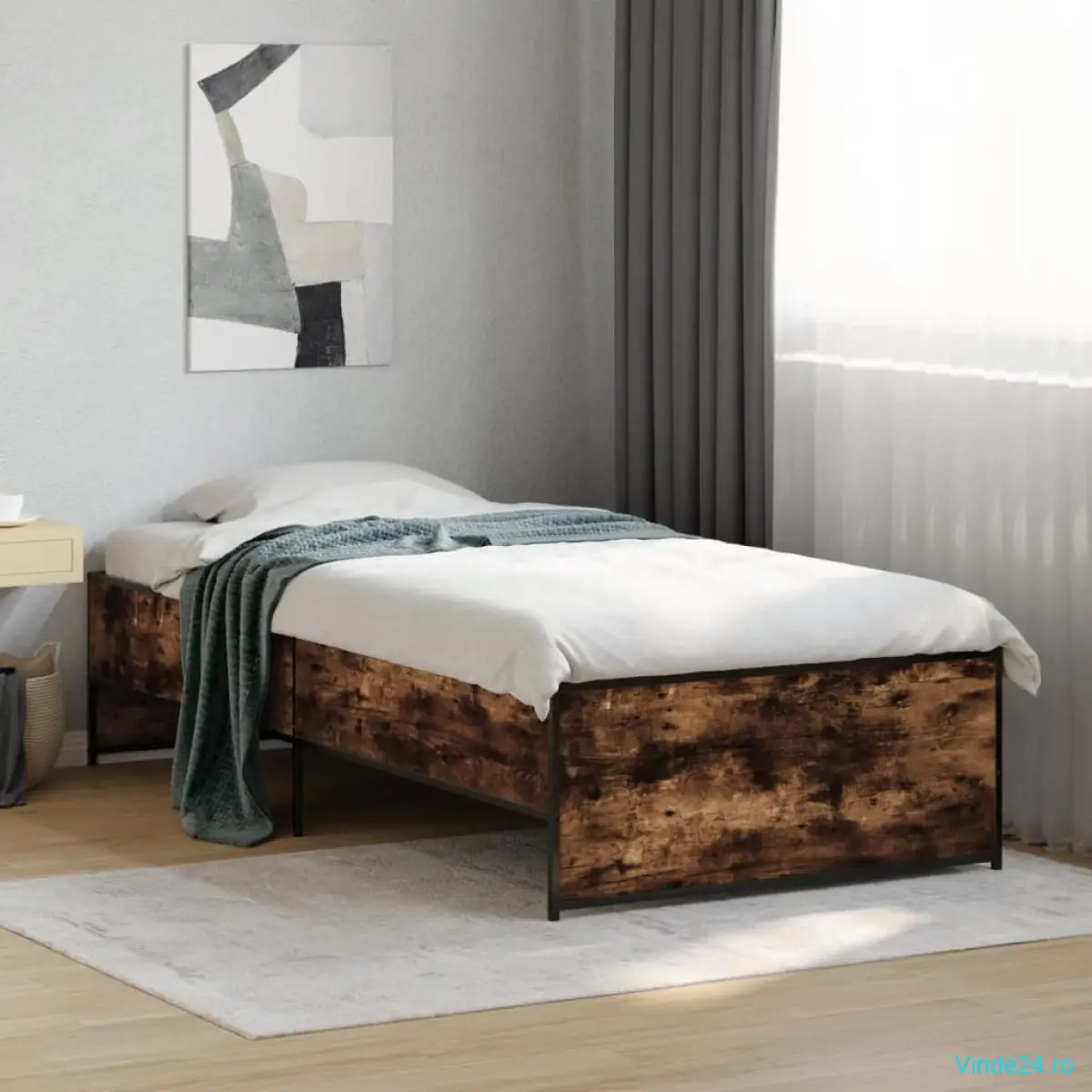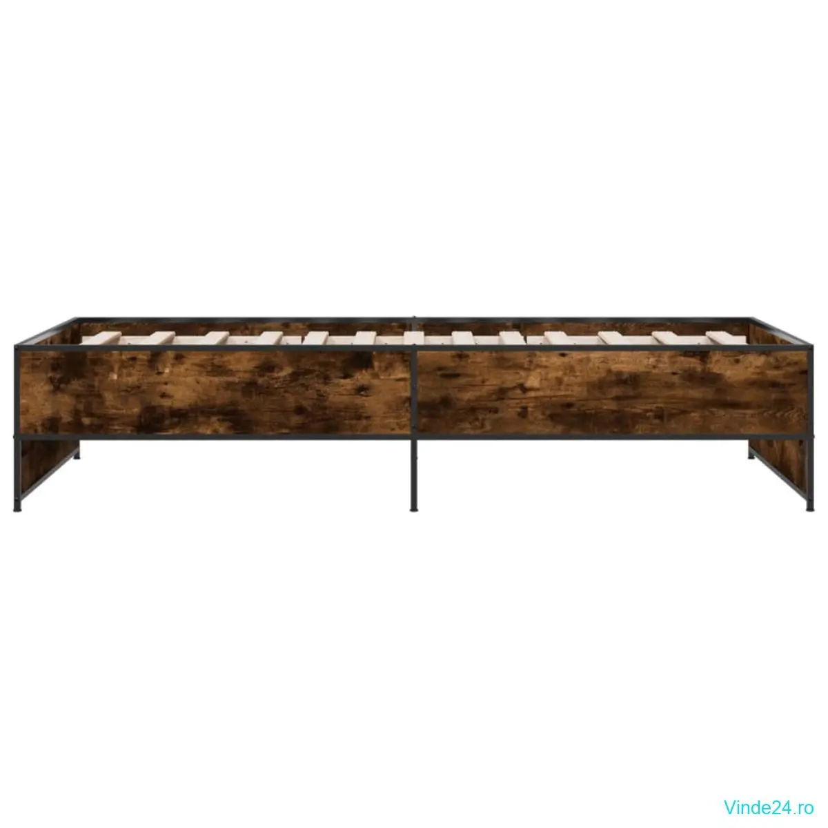 vidaXL Cadru de pat, stejar fumuriu, 75x190cm, lemn prelucrat și metal