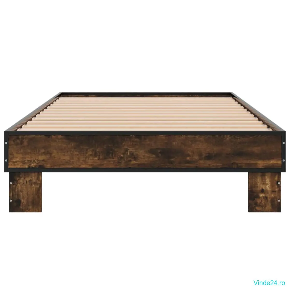 vidaXL Cadru de pat, stejar fumuriu, 90x190cm, lemn prelucrat și metal