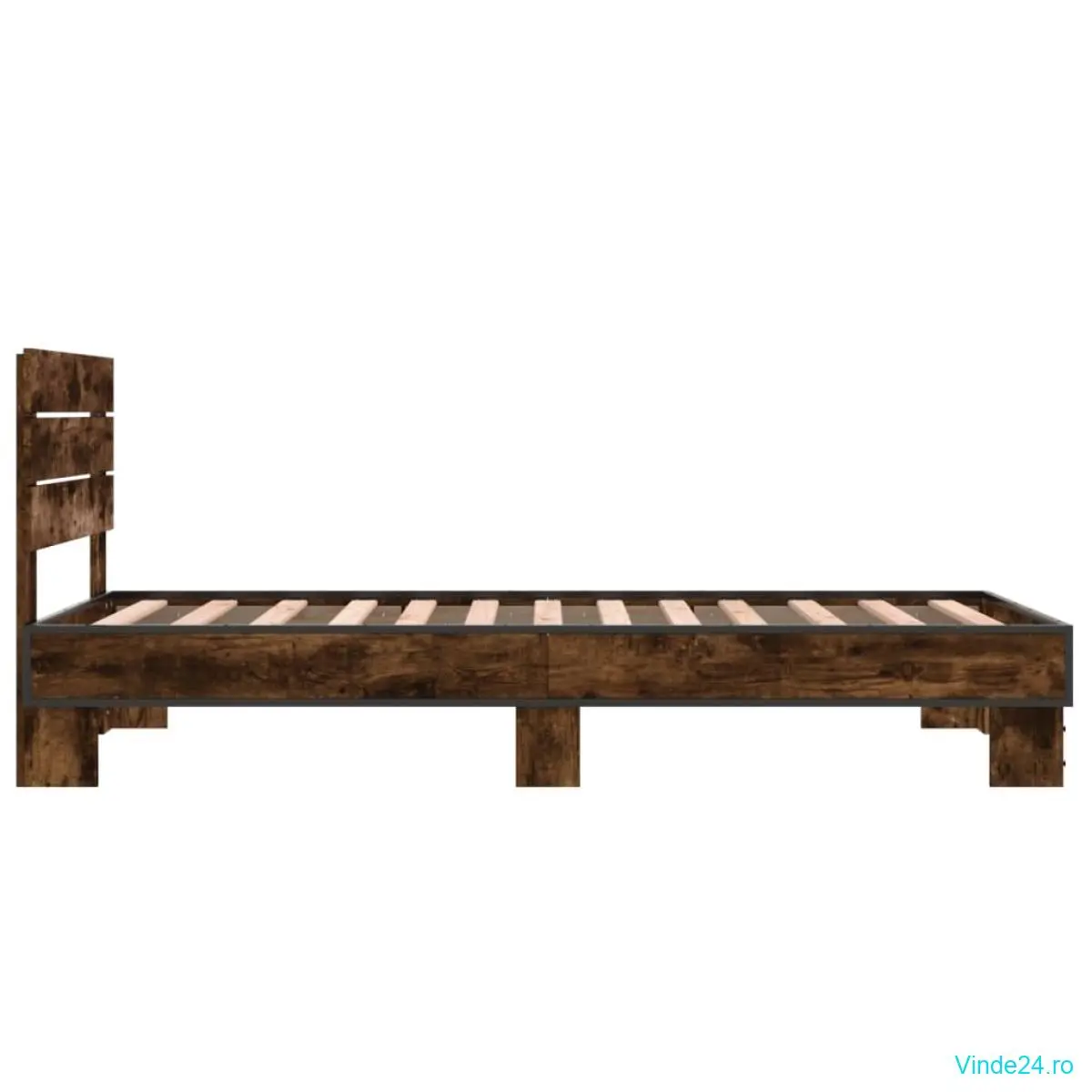 vidaXL Cadru de pat, stejar fumuriu, 90x190cm, lemn prelucrat și metal