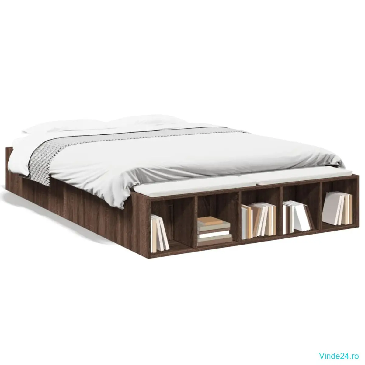 vidaXL Cadru de pat, stejar maro, 120x190 cm, lemn prelucrat