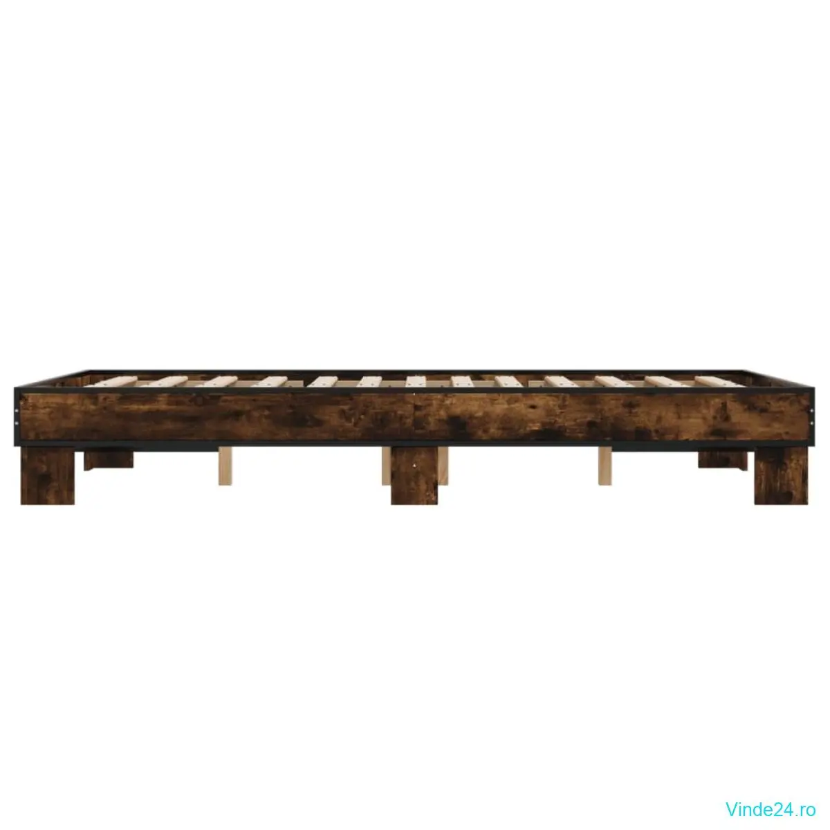 vidaXL Cadru de pat, stejar maro, 140x190 cm, lemn prelucrat și metal
