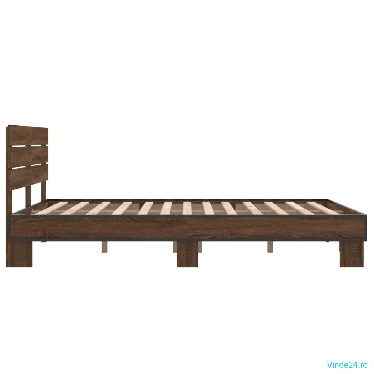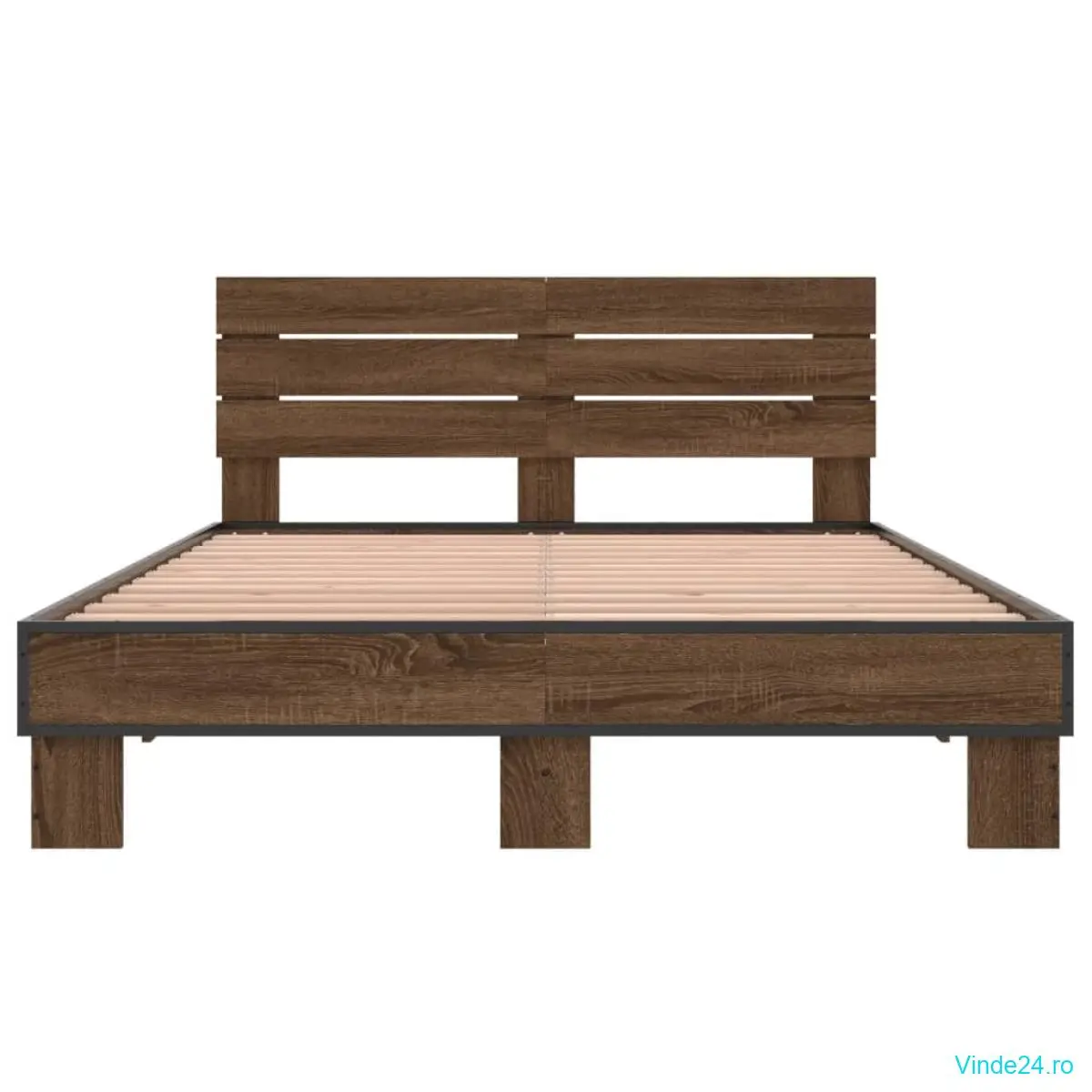 vidaXL Cadru de pat, stejar maro, 140x190 cm, lemn prelucrat și metal