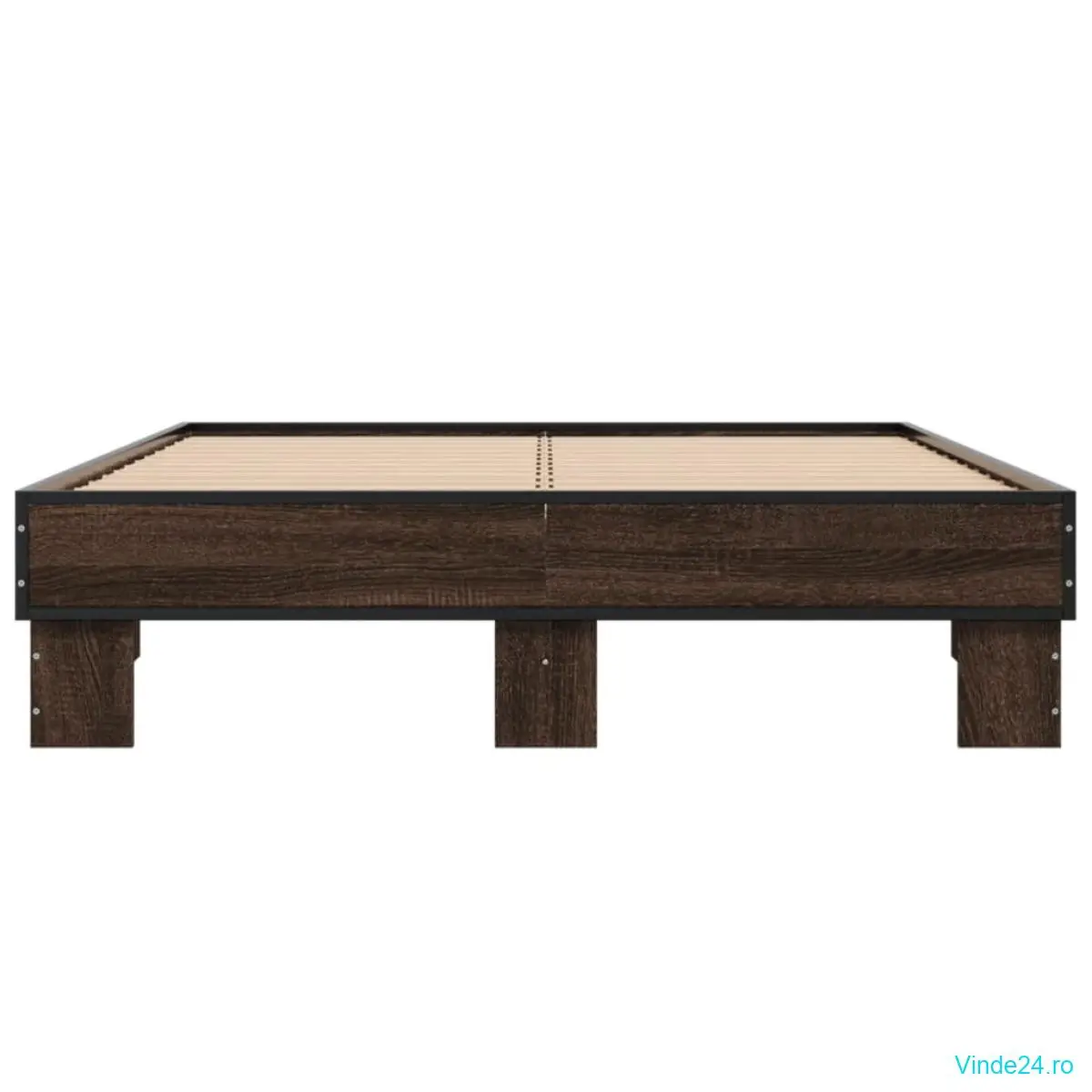 vidaXL Cadru de pat, stejar maro, 140x190 cm, lemn prelucrat și metal