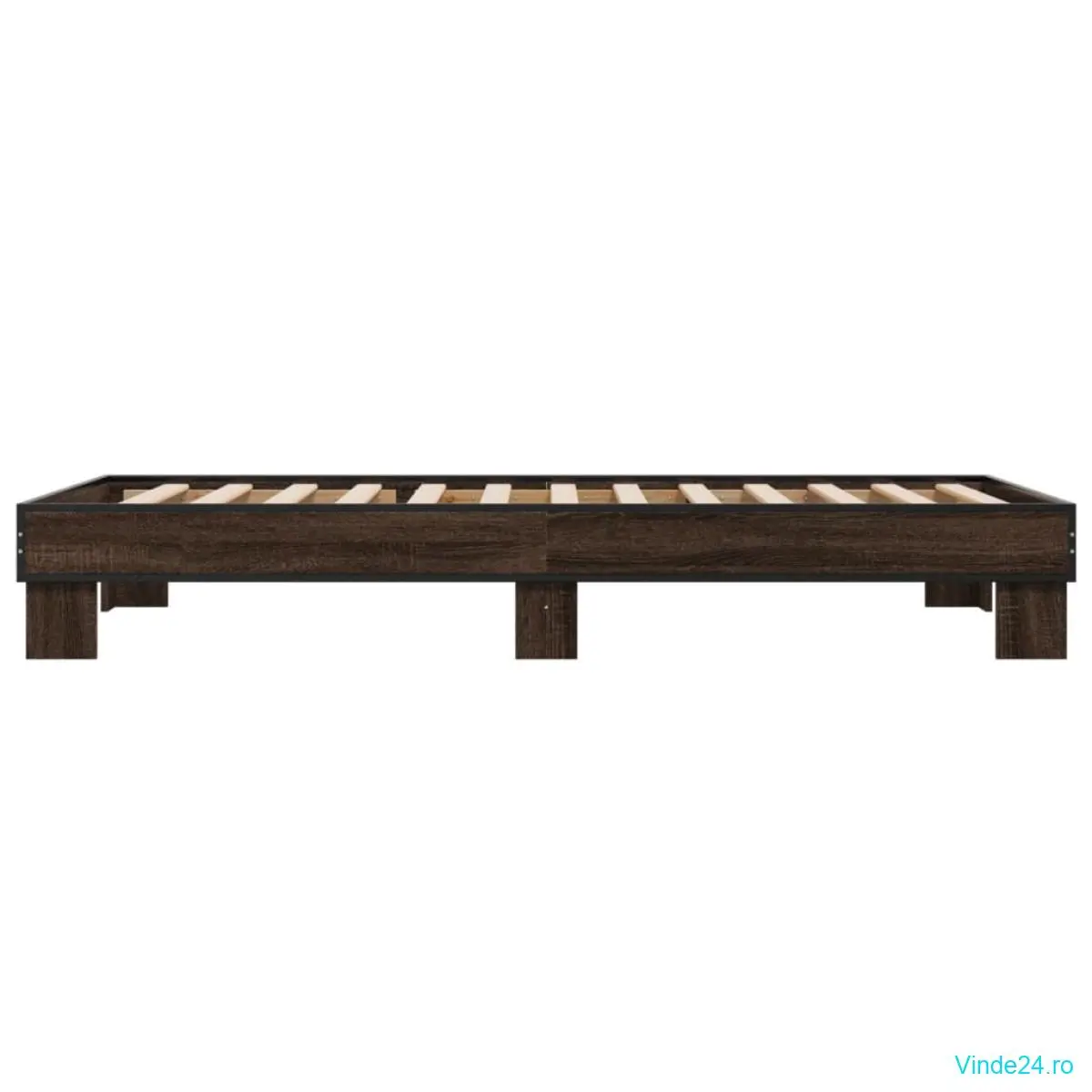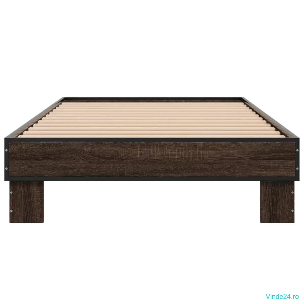 vidaXL Cadru de pat, stejar maro, 90x190 cm, lemn prelucrat și metal