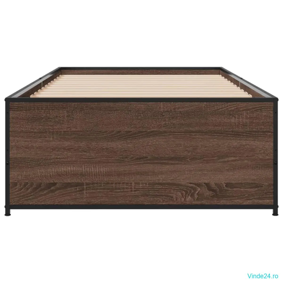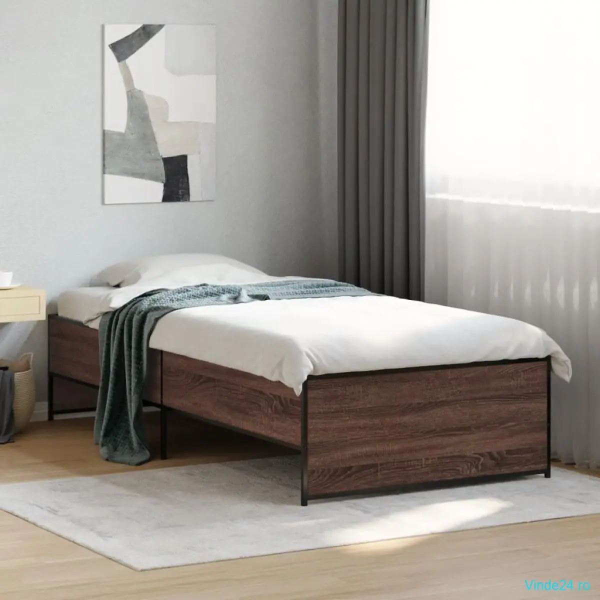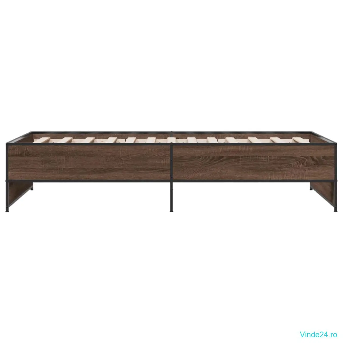 vidaXL Cadru de pat, stejar maro, 90x200 cm, lemn prelucrat și metal