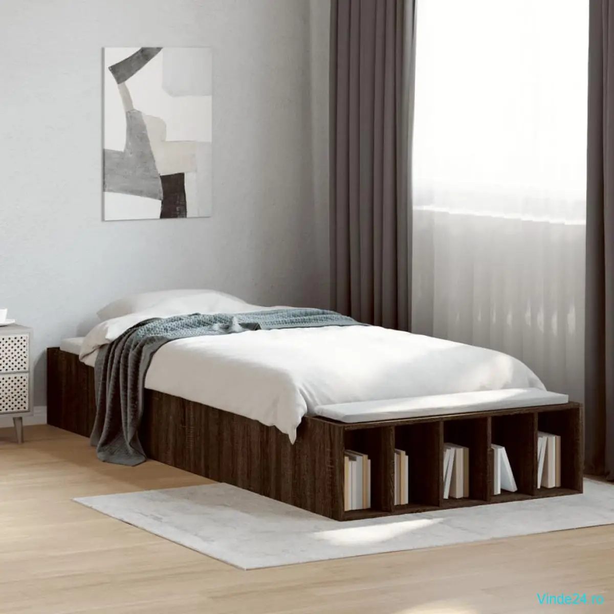 vidaXL Cadru de pat, stejar maro, 90x200 cm, lemn prelucrat