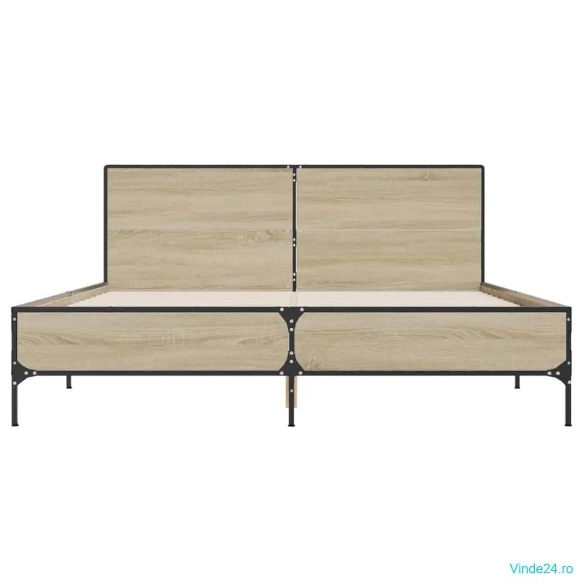 vidaXL Cadru de pat, stejar sonoma, 160x200cm, lemn prelucrat și metal